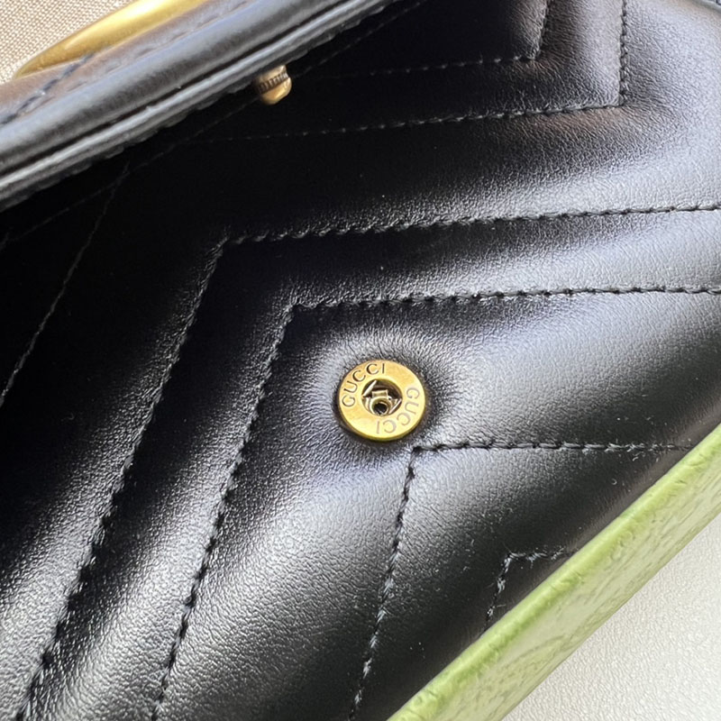 シェブロン キルティング レザーの〔GGマーモント〕 コンチネンタルウォレット。バックのGGが印象的です。