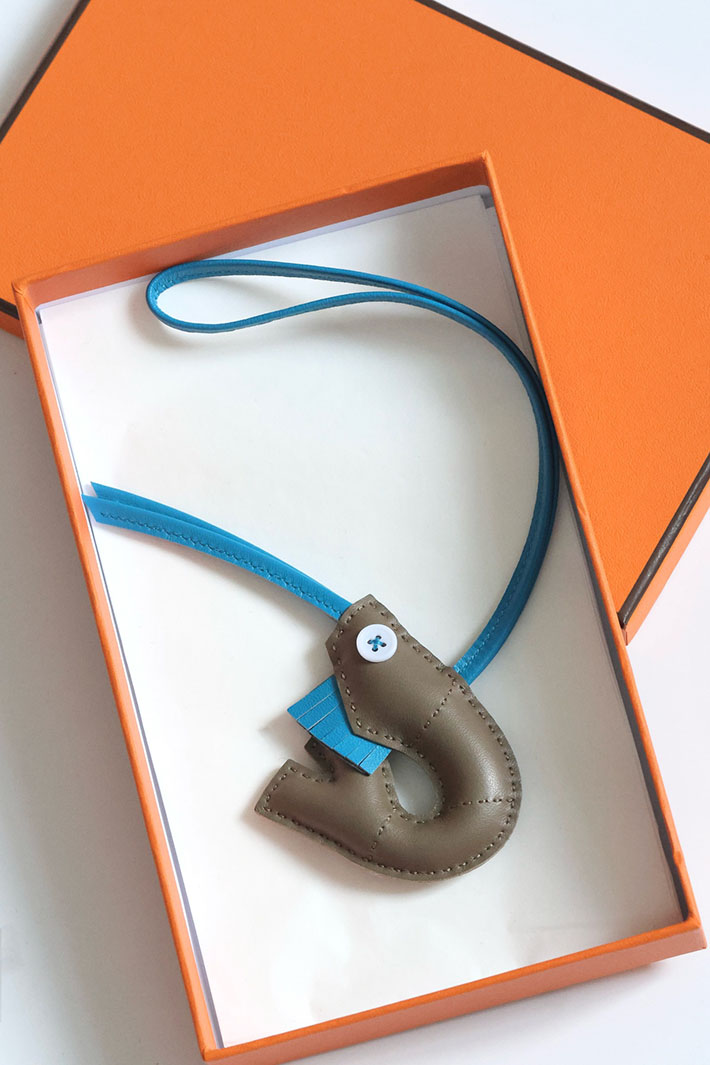 エルメス シュリンプ チャーム エトゥープ/ブルーフリーダ アニオン×コットン 2518456 エルメス チャーム 定価