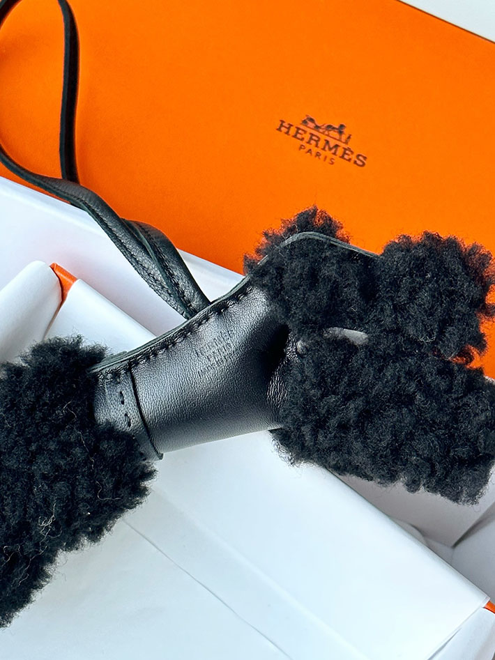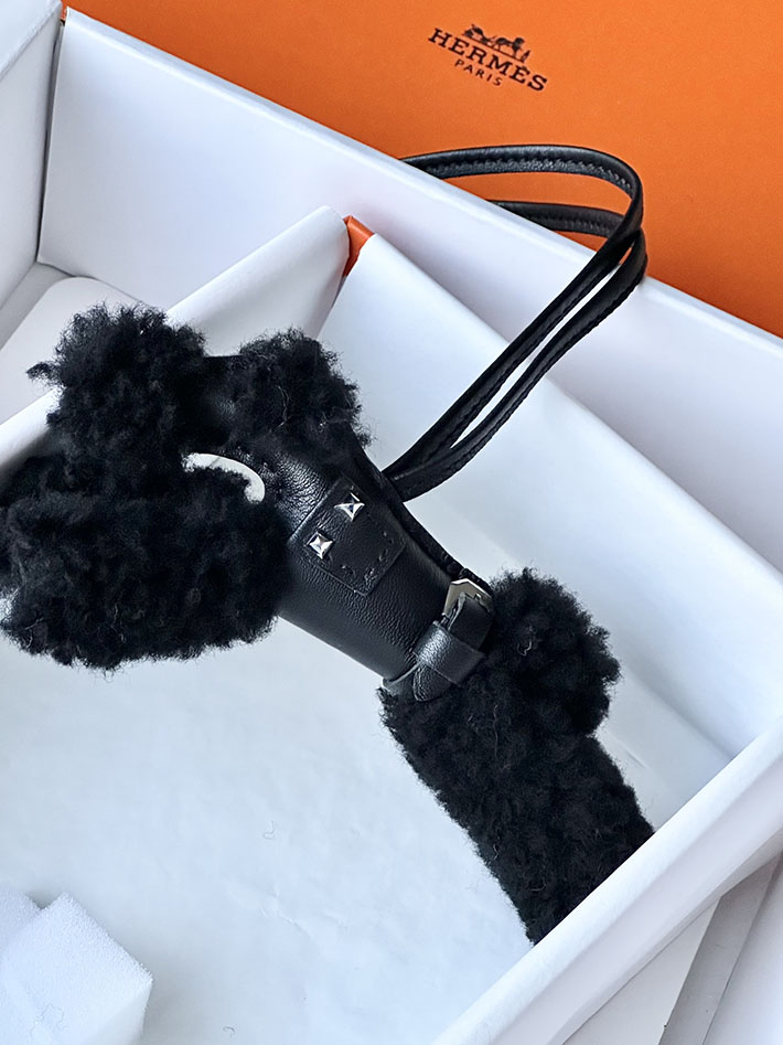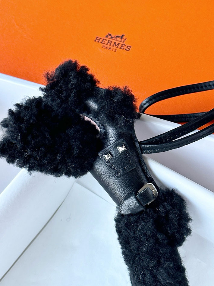 HERMES エルメス バディ チャーム クロ アニオン×ムートン×コットン 2518500 エルメス 犬 チャーム 定価