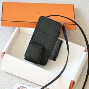 並行輸入品 HERMES エルメスウェイ スマートフォンケース リップケース付 黒 ブラック シルバー金具 2521321 エルメス iphoneケース 公式
