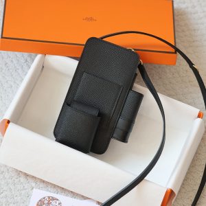 並行輸入品 HERMES エルメスウェイ スマートフォンケース リップケース付 黒 ブラック ゴールド金具 2521322 エルメス iphoneケース 公式