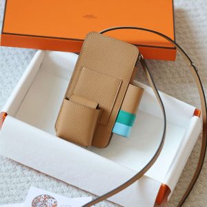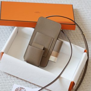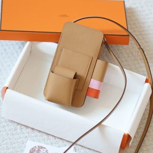並行輸入品 HERMES エルメスウェイ スマートフォンケース リップケース付 エトゥープ/チャイ/ナタ ゴールド金具 2521327 エルメス スマホケース 斜めがけ