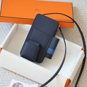 並行輸入品 HERMES エルメスウェイ スマートフォンケース リップケース付 ブルーサフィール/ブルーフランス/黒 ブラック ゴールド金具 2521325 エルメス携帯ショルダー