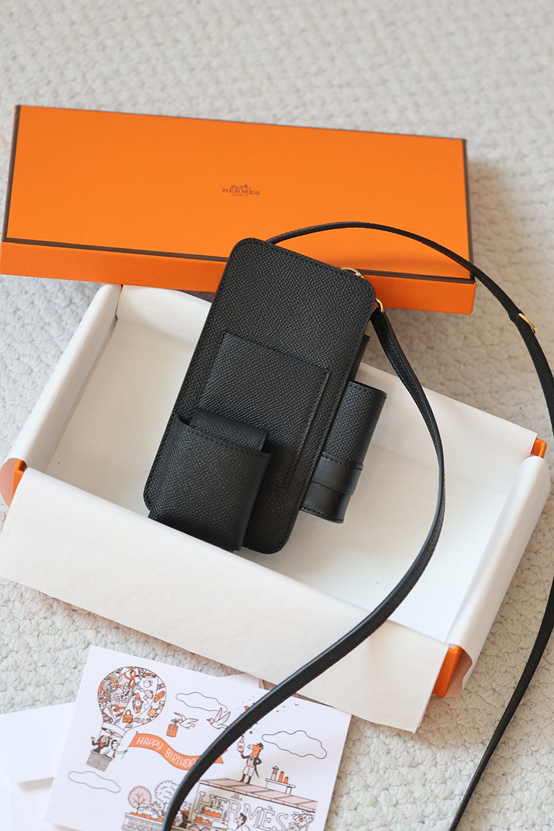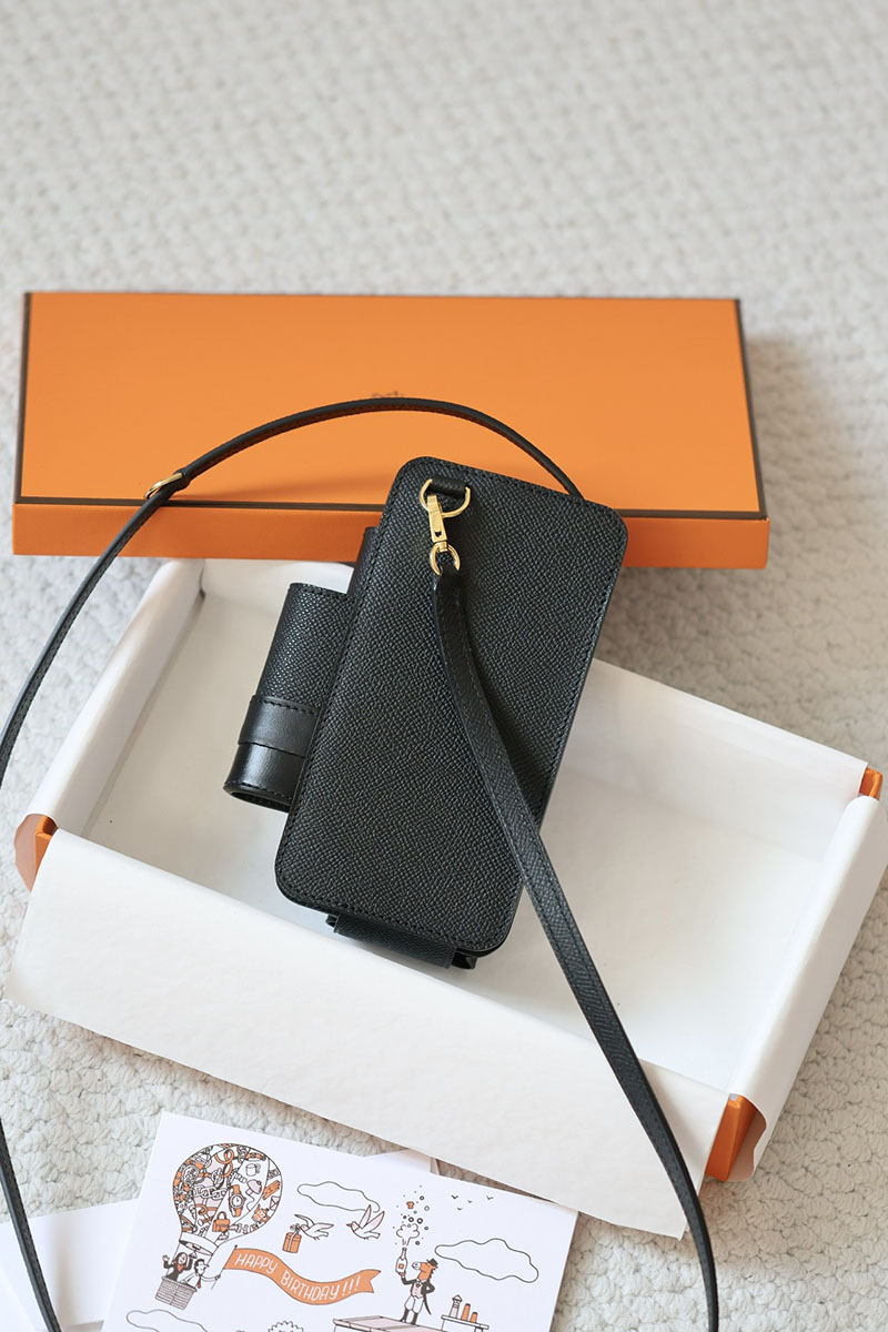 並行輸入品 HERMES エルメスウェイ スマートフォンケース リップケース付 黒 ブラック ゴールド金具 2521322 エルメス iphoneケース 公式