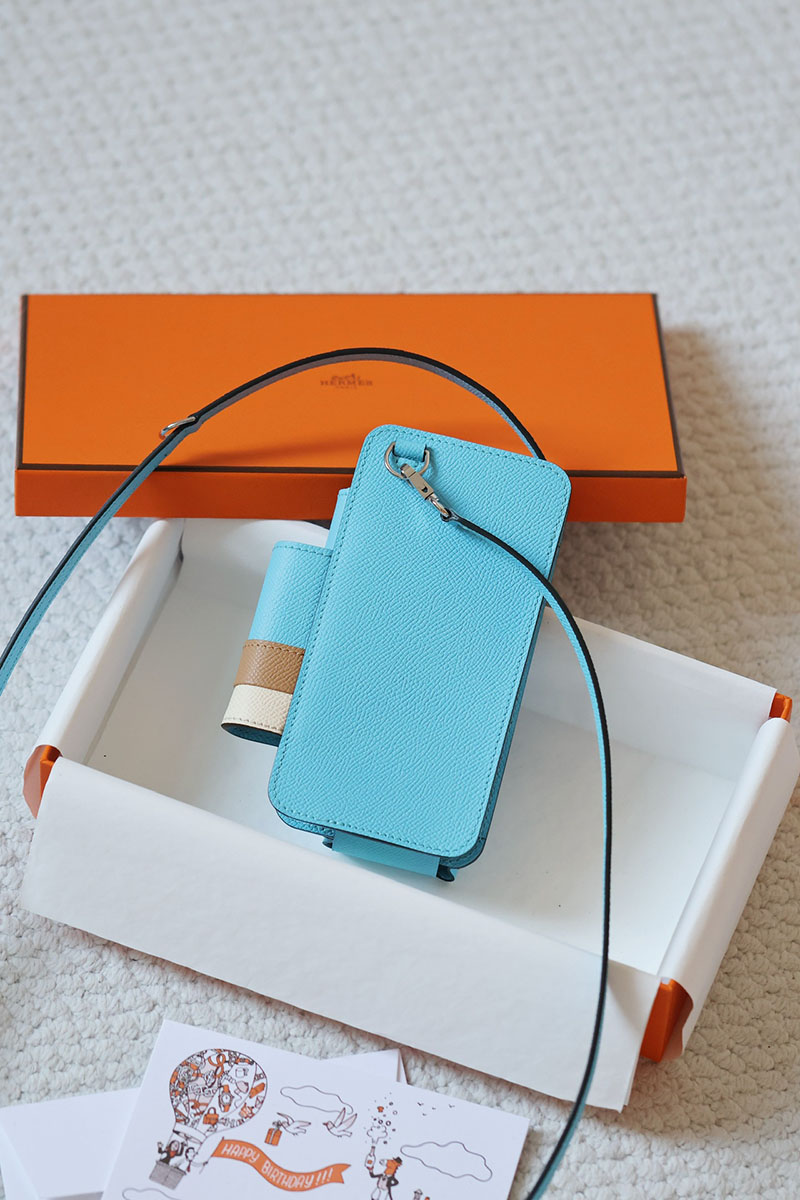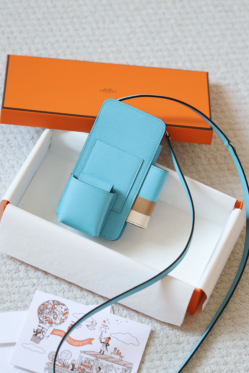 並行輸入品 HERMES エルメスウェイ スマートフォンケース リップケース付 セレステ/チャイ/ナタ ゴールド金具 2521331 エルメス風 iphoneケース
