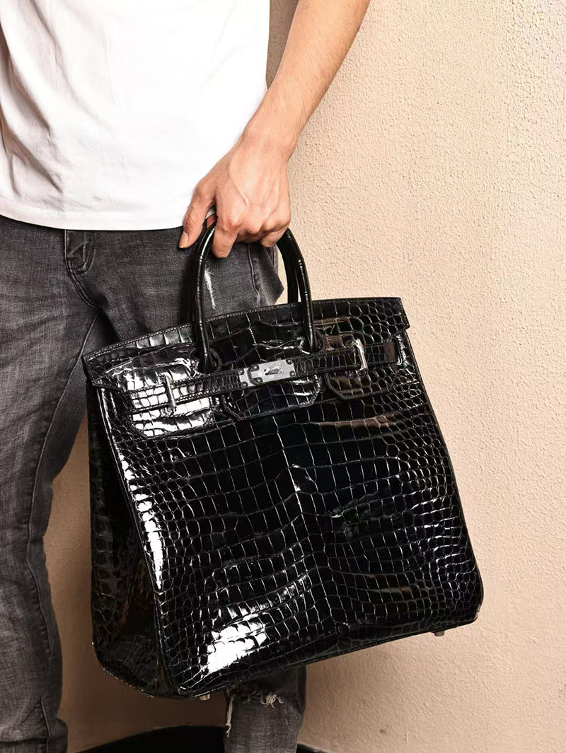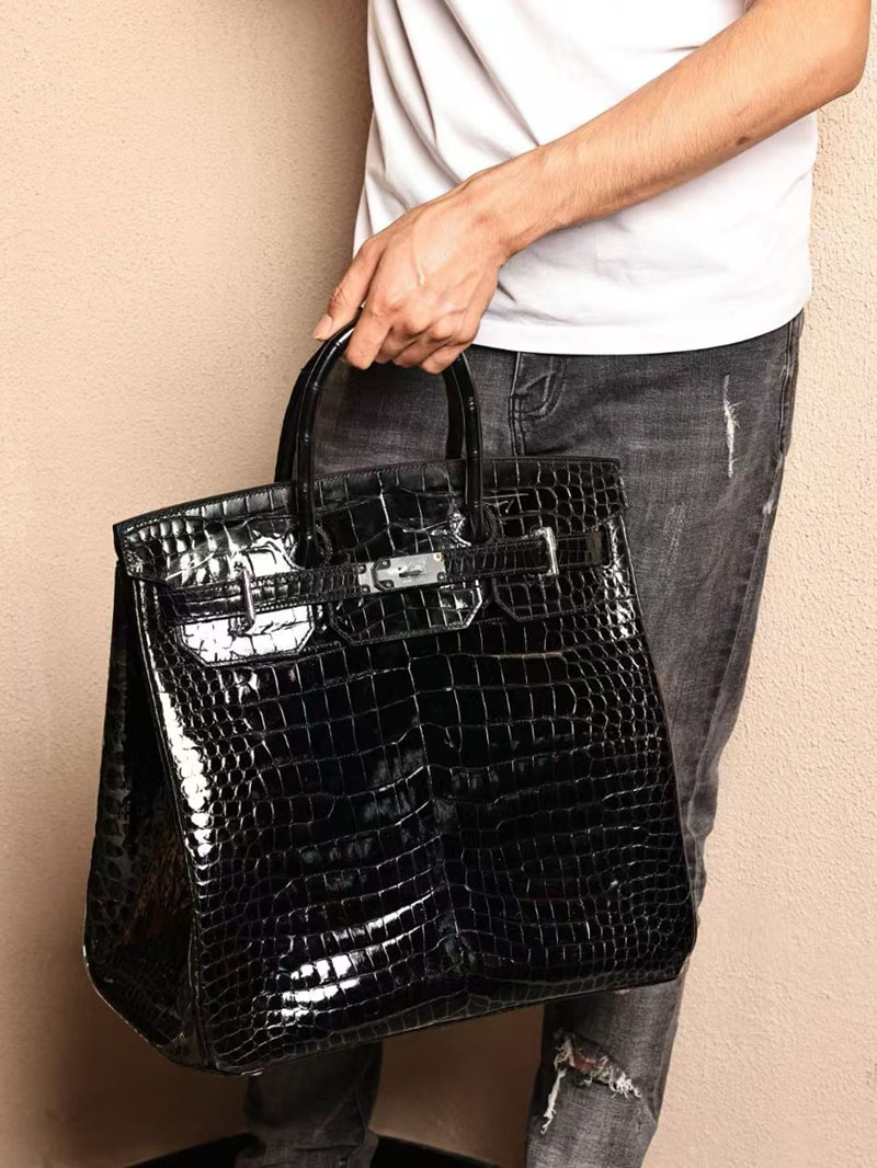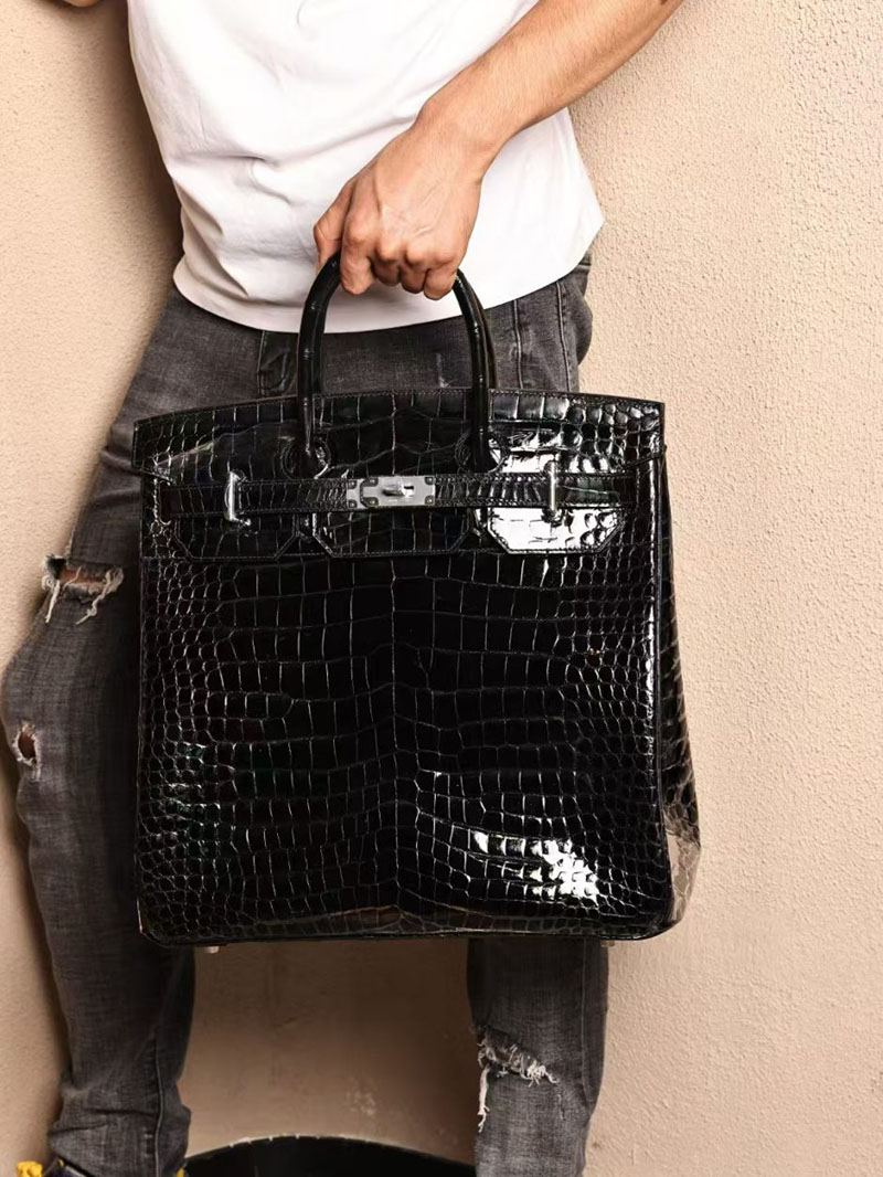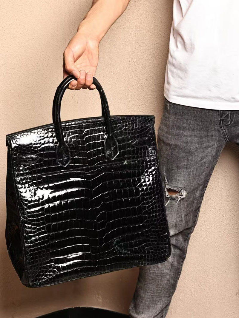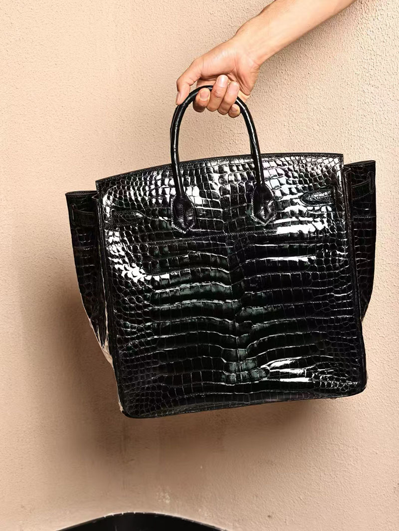 Men’s Bag Hac 40CM HCP Shiny Porosus Crocodile CK89 Noir Silver Hardware
