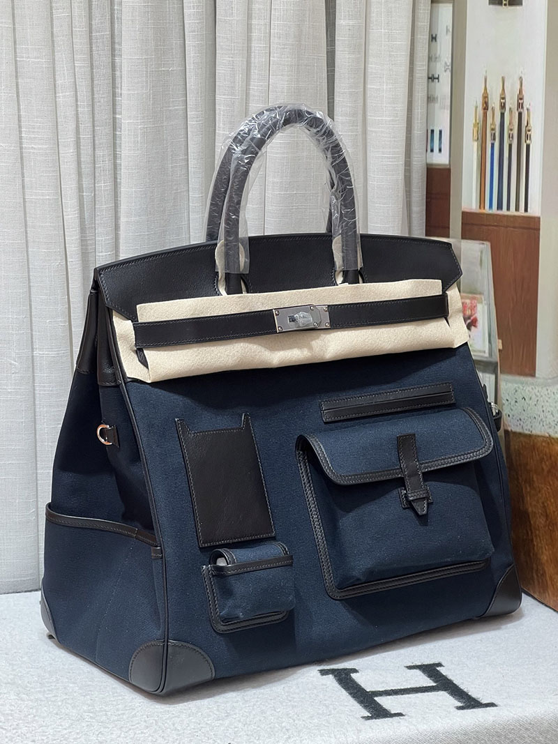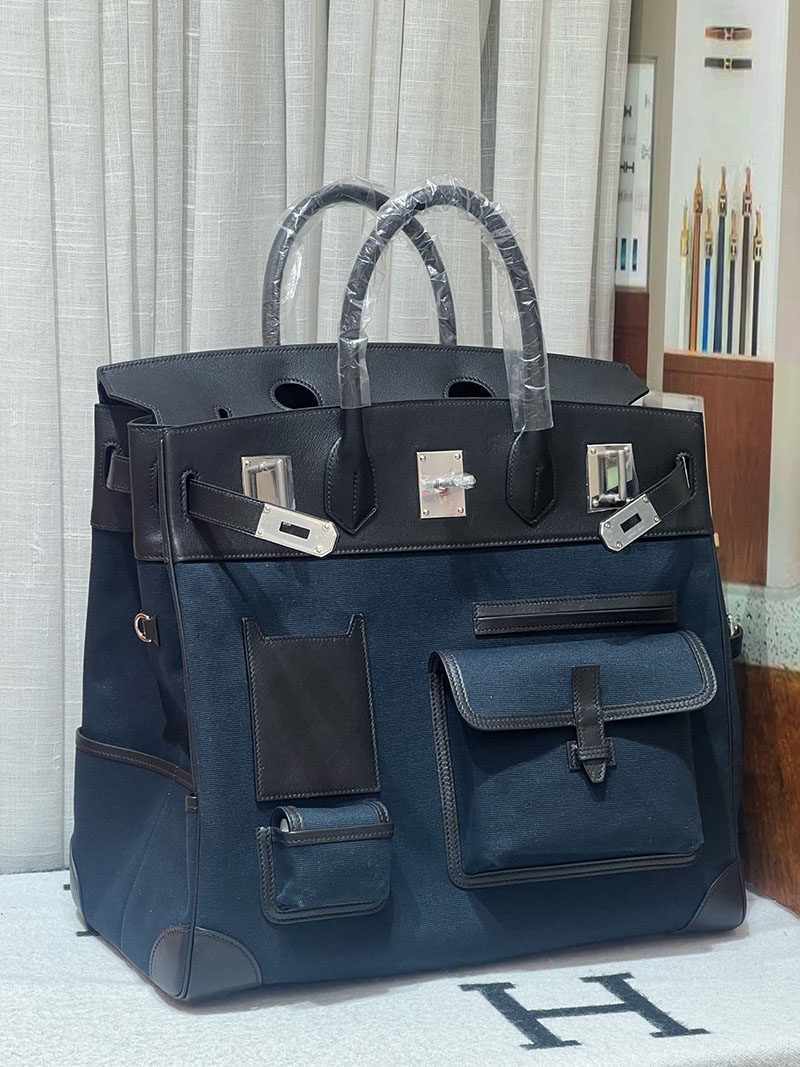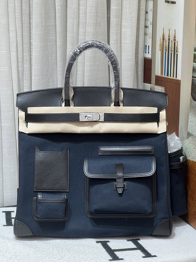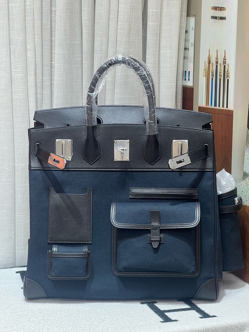 エルメスコピー オータクロア40 メンズ HERMES オータクロア 40cm カーゴ ブルーニュイ トワルアッシュ×スイフト シルバー金具 2524217