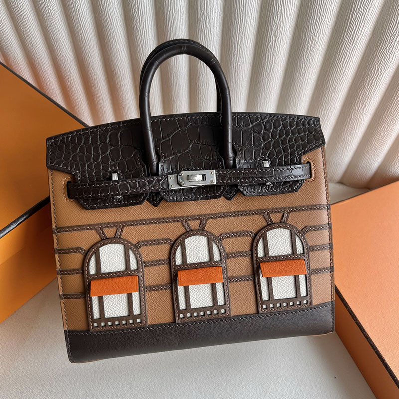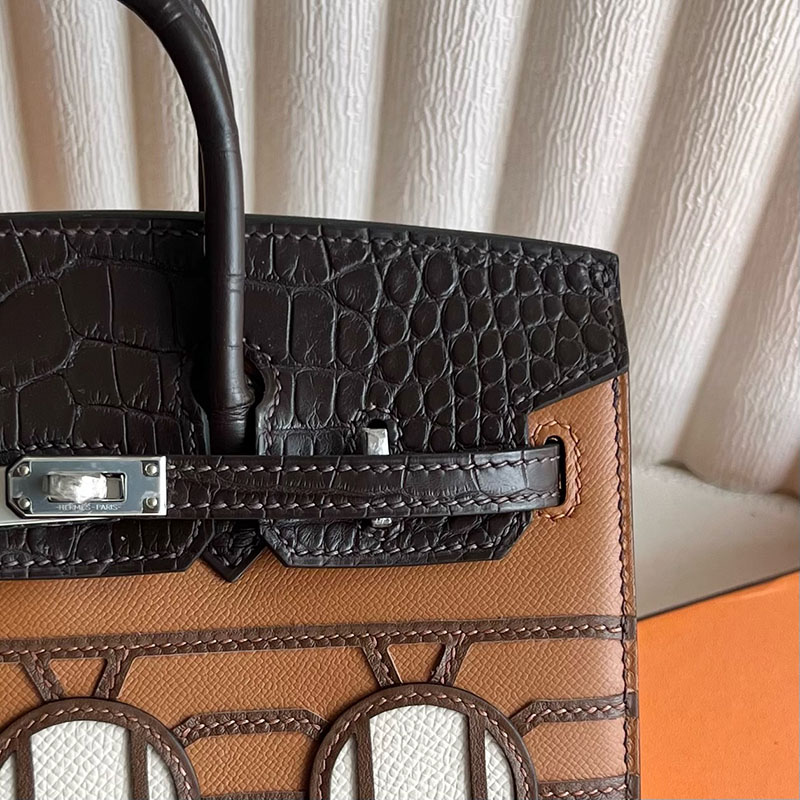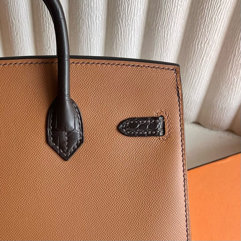 エルメス バーキン 20 セリエ フォーブル 昼 ゴールド×エベンヌ×ブリュレ ヴォー・マダム×アリゲーターマット×スイフト 2521273