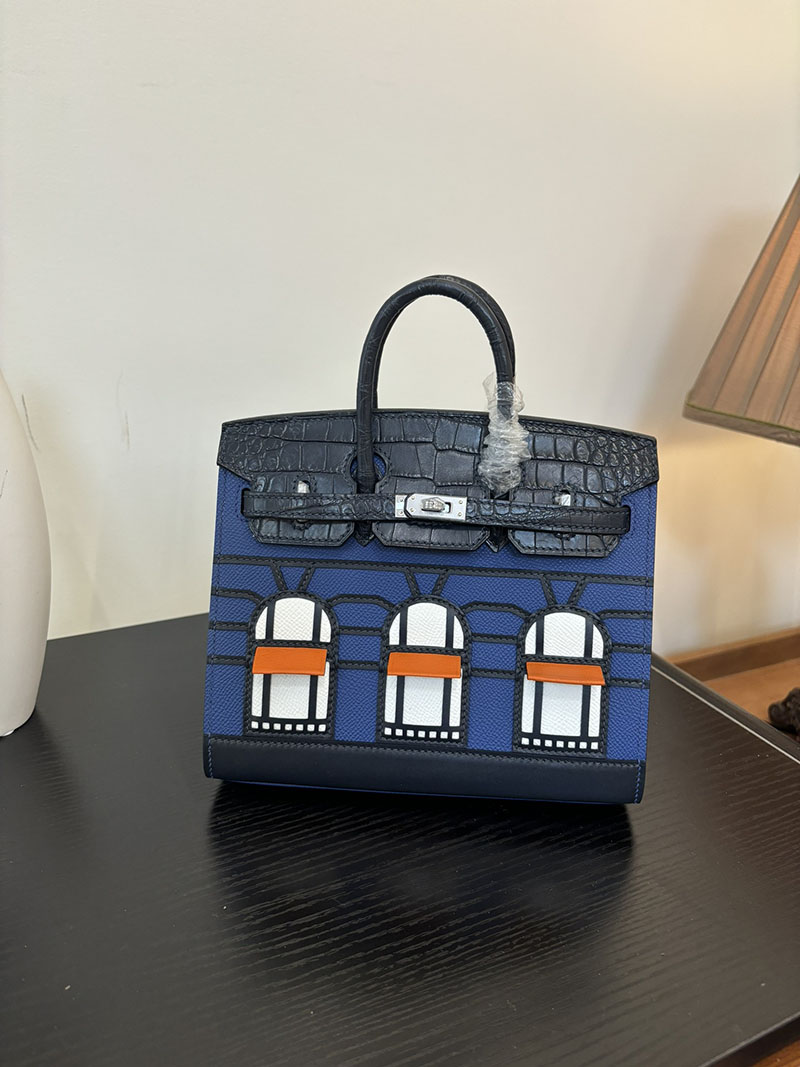 バーキン20 定価 HERMES バーキン 20 セリエ ディープブルー×ブルーマリン×ブルーインディゴ ヴォー・マダム×アリゲーターマット×スイフト シルバー金具 2524380