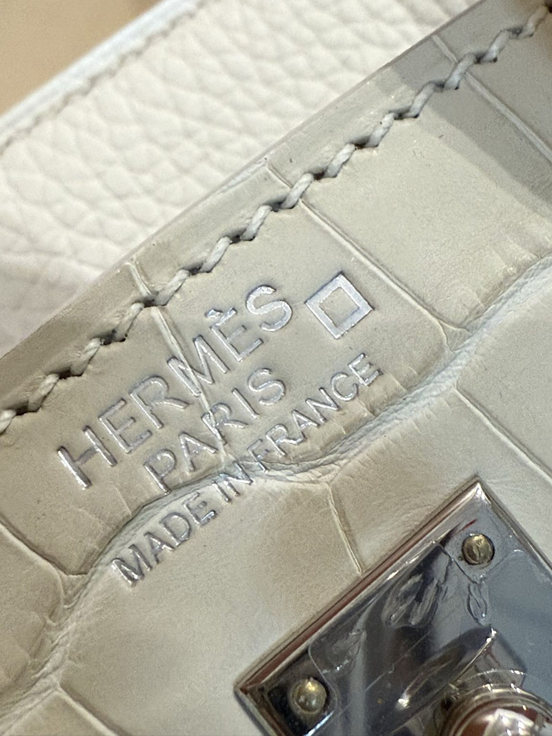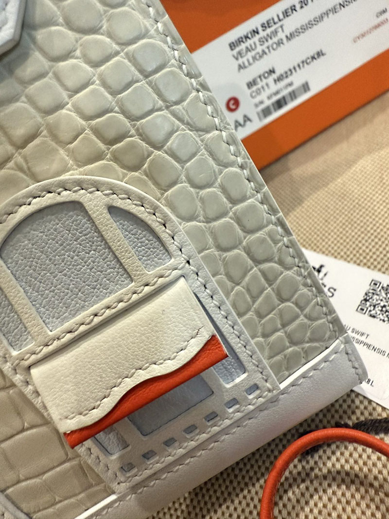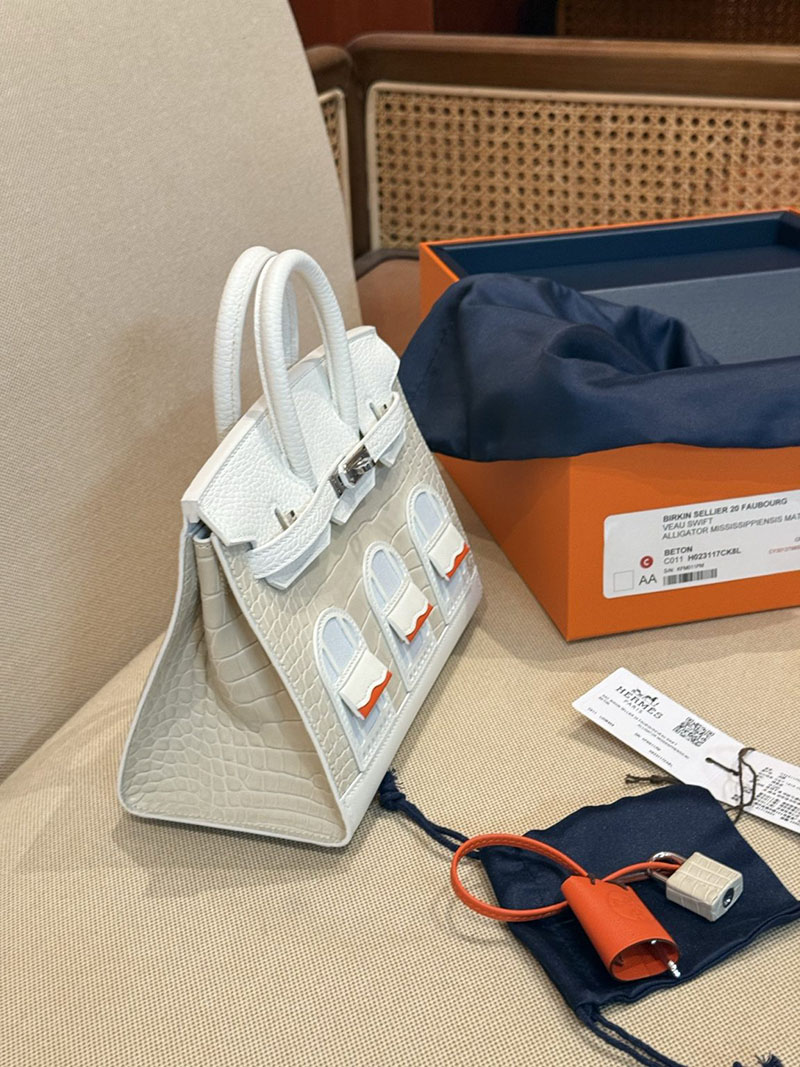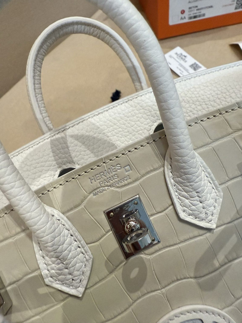 エルメスコピー バーキン20 定価 HERMES バーキン 20 セリエ ベトン トリヨンクレマンス/クロコダイル アリゲーターマット シルバー金具2524128