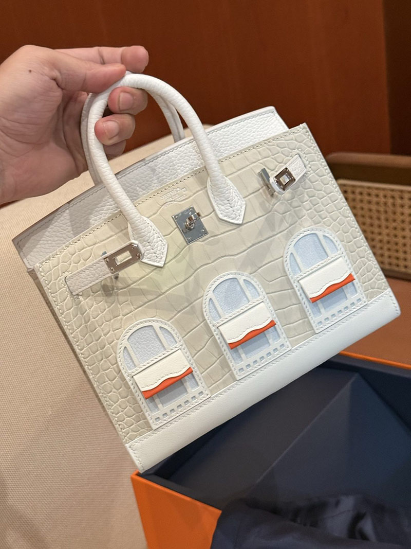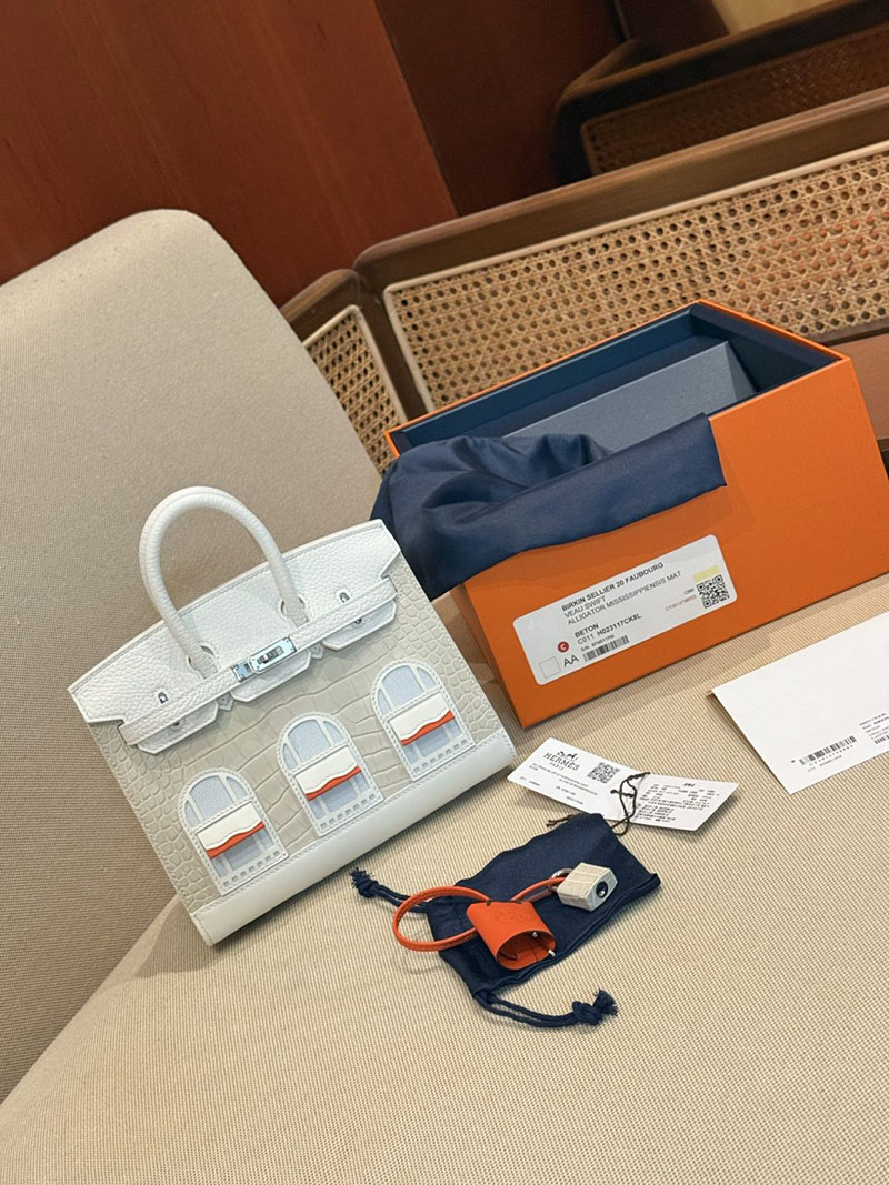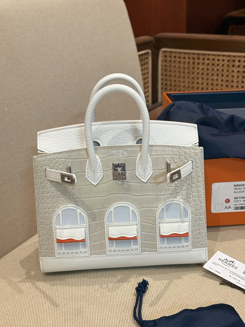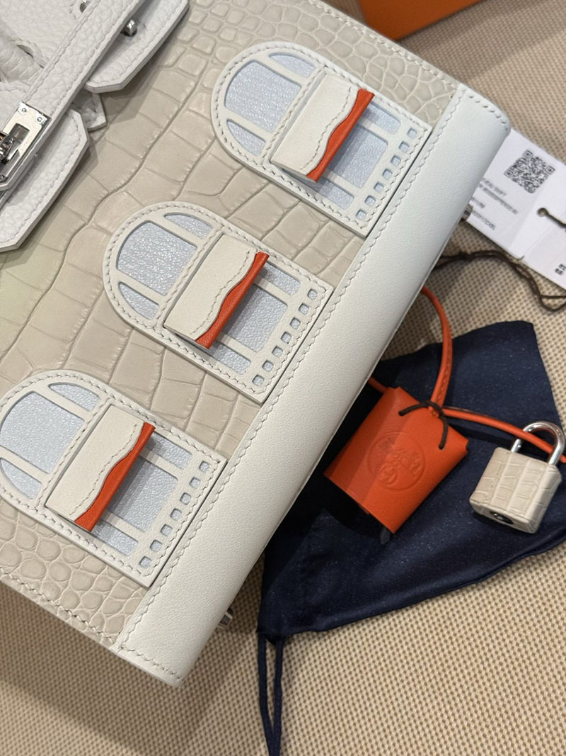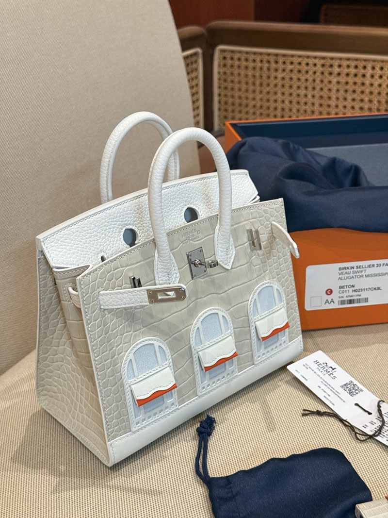 エルメスコピー バーキン20 定価 HERMES バーキン 20 セリエ ベトン トリヨンクレマンス/クロコダイル アリゲーターマット シルバー金具2524128