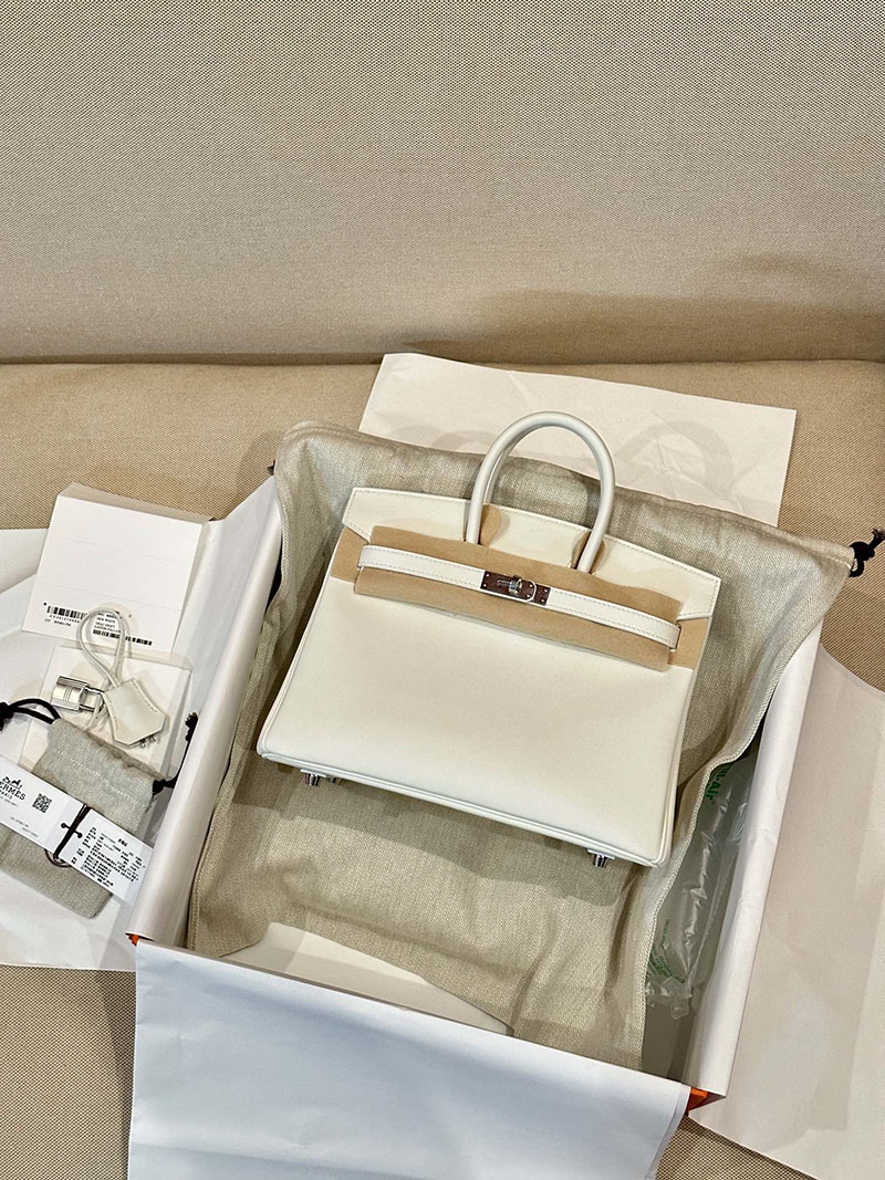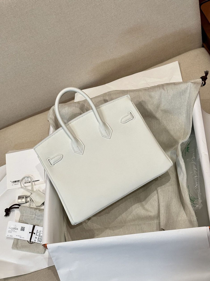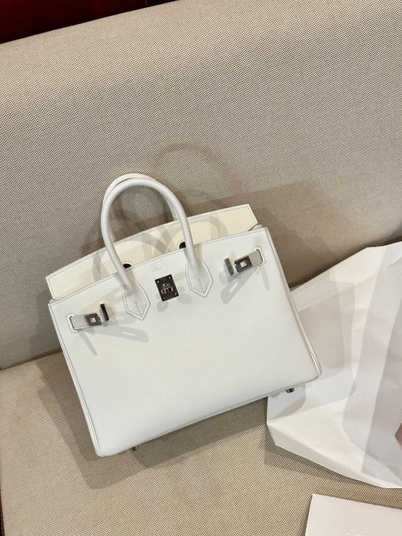 Hermes Birkin 25CM Swift Leather 0U New White Silver Hardware