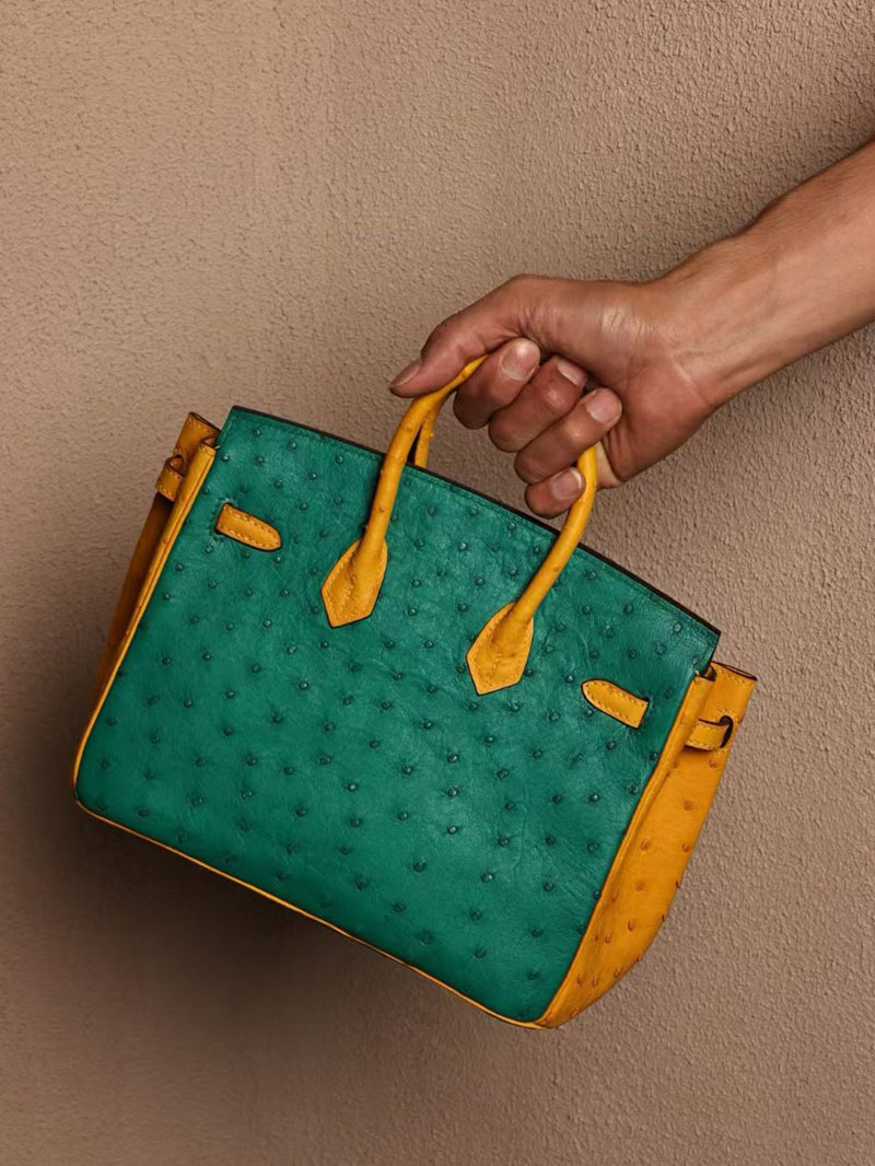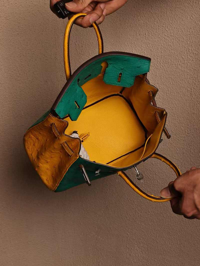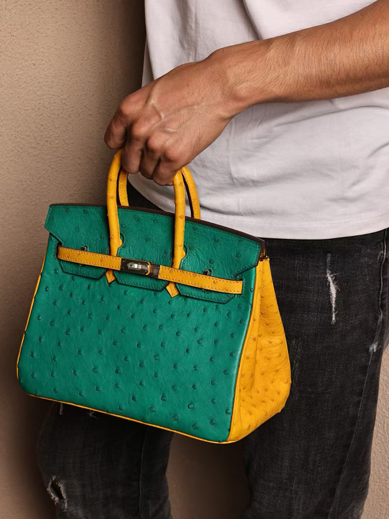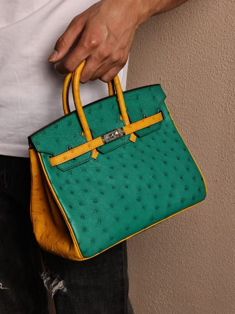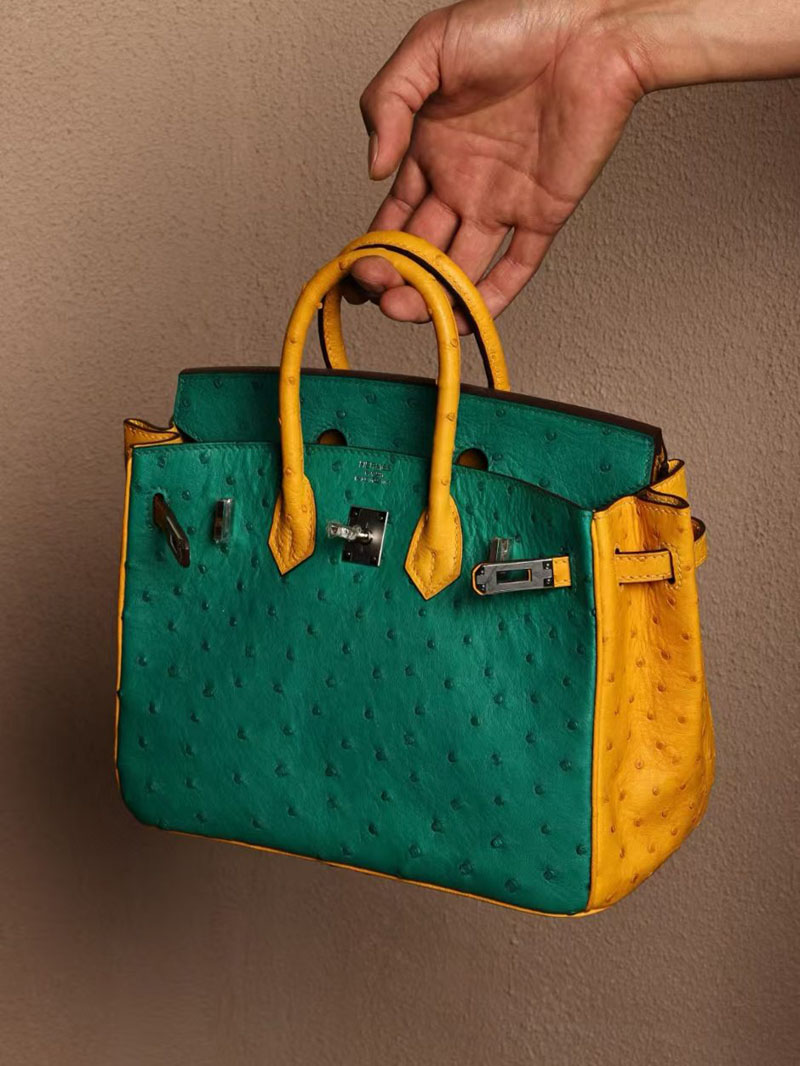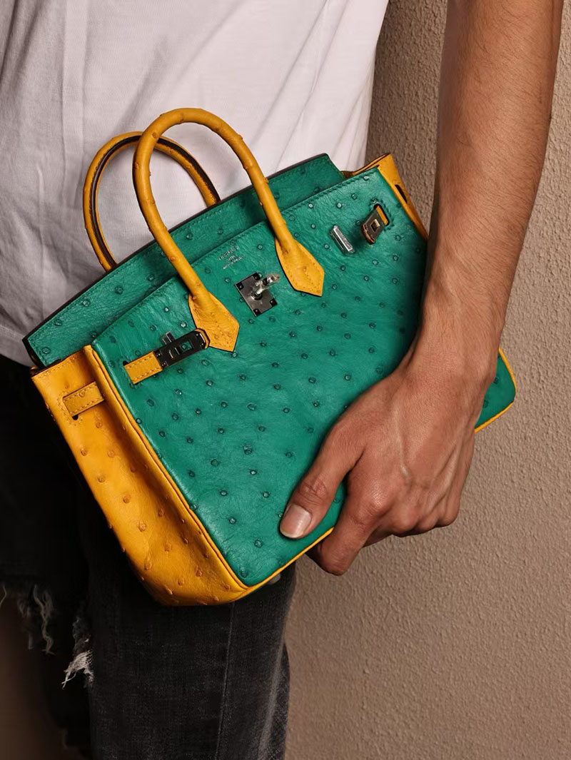 エルメス バーキン25 パーソナル ヴェールヴェルティゴ/ジョーヌアンブル オーストリッチ シルバー金具 2412895 オーストリッチ バーキン25 定価