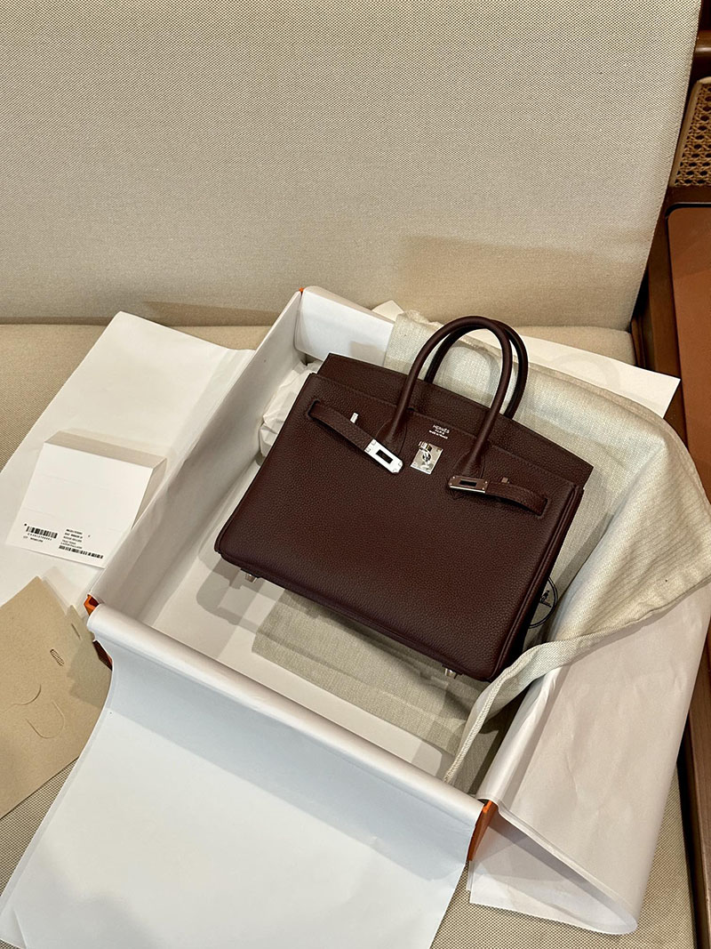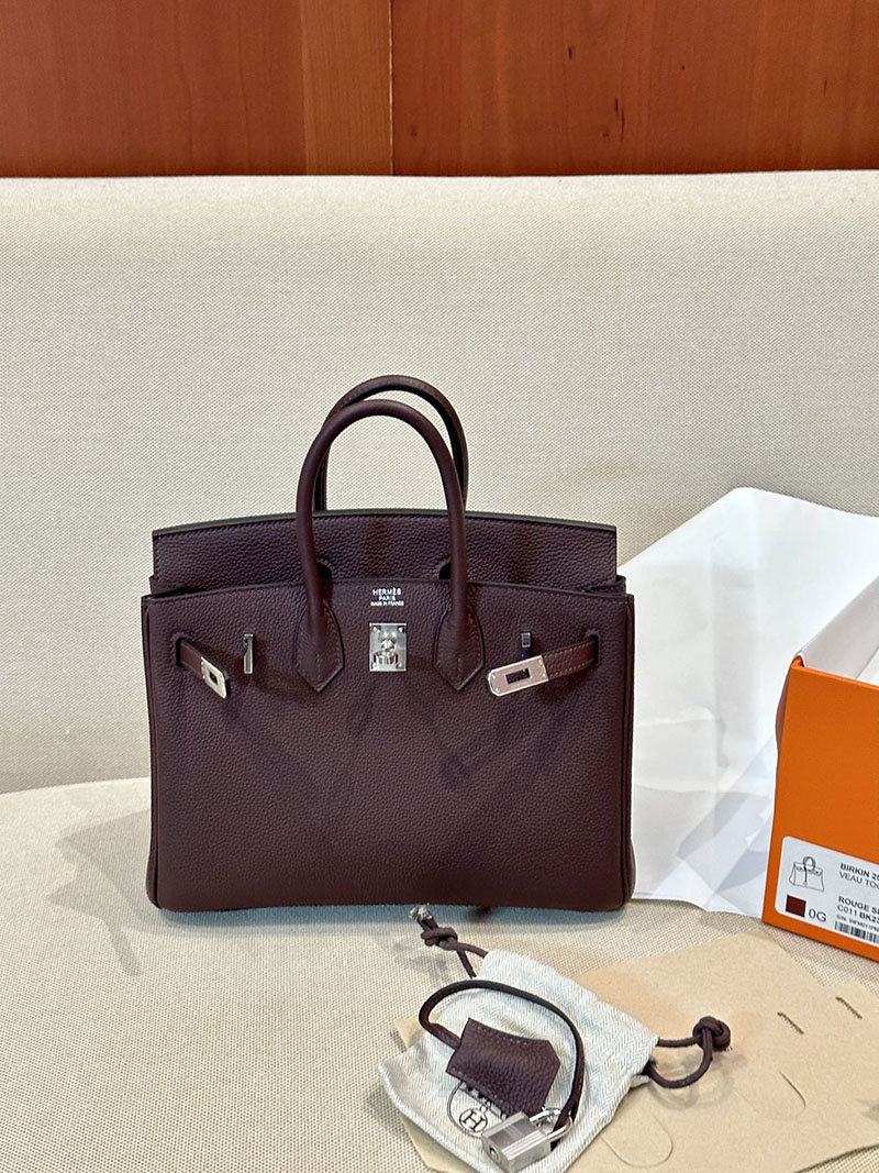 Hermes Togo Leather Birkin 25CM 0G Rouge Sellier Silver Hardware