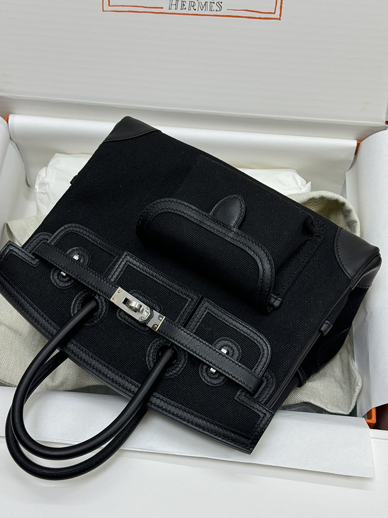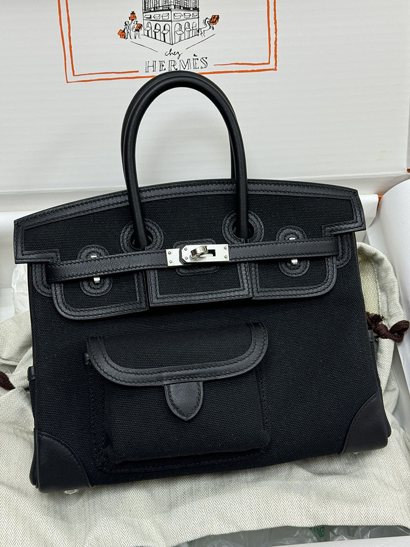 人気色 H品 エルメス バーキン25 カーゴ 黒 ブラック トワルゴエラン×スイフト シルバー金具 2517803 バーキンカーゴ 定価