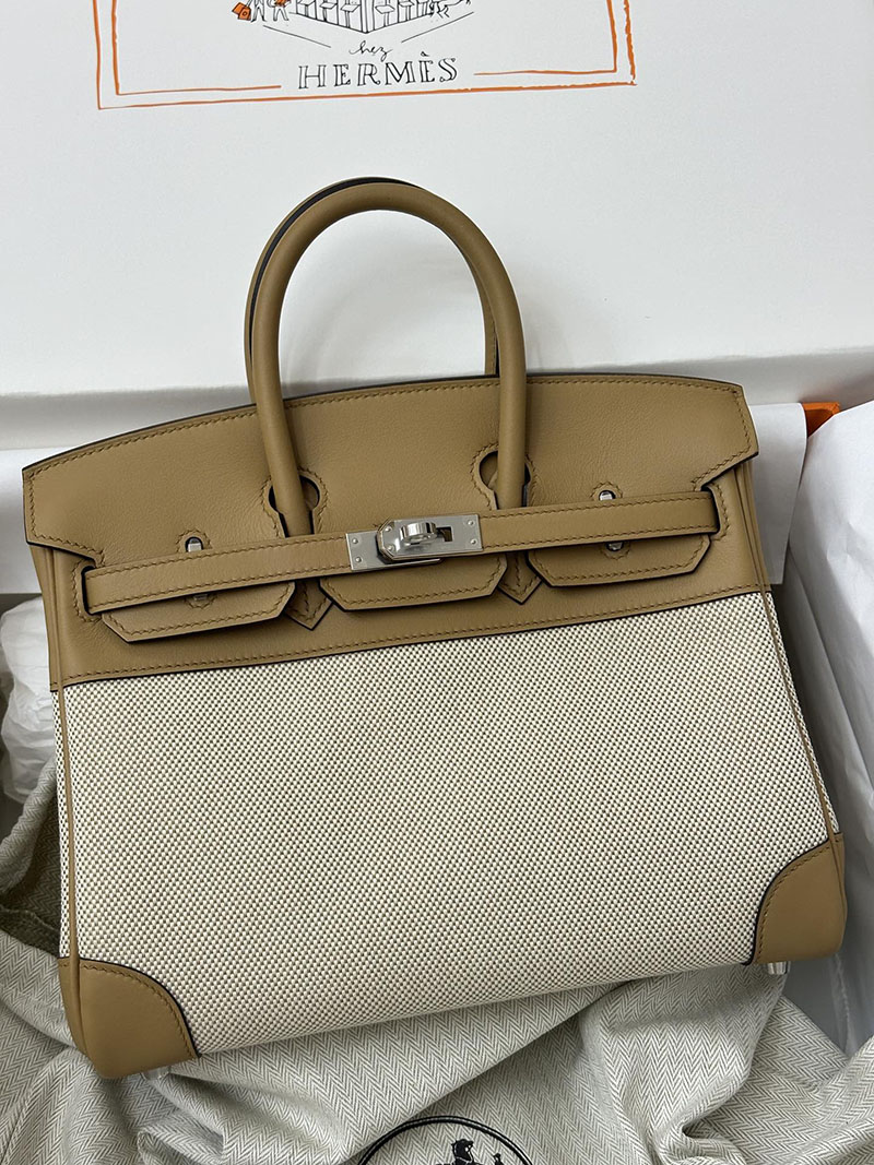人気色 H品 エルメス バーキン25 チャイ トワルアッシュ×スイフト シルバー金具 2517842 エルメス ハンドバッグ 種類