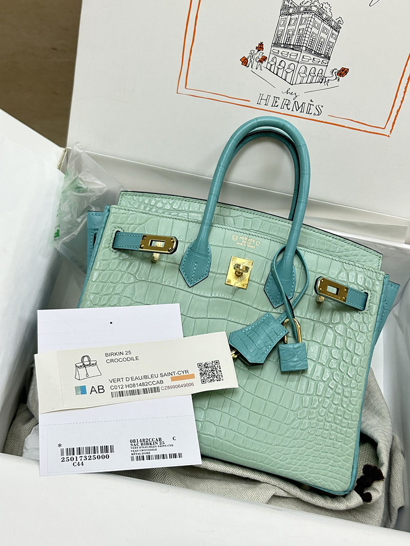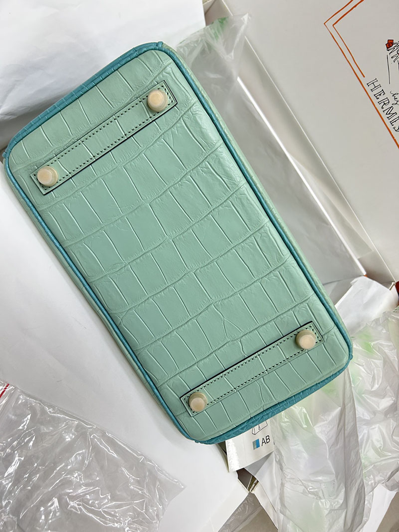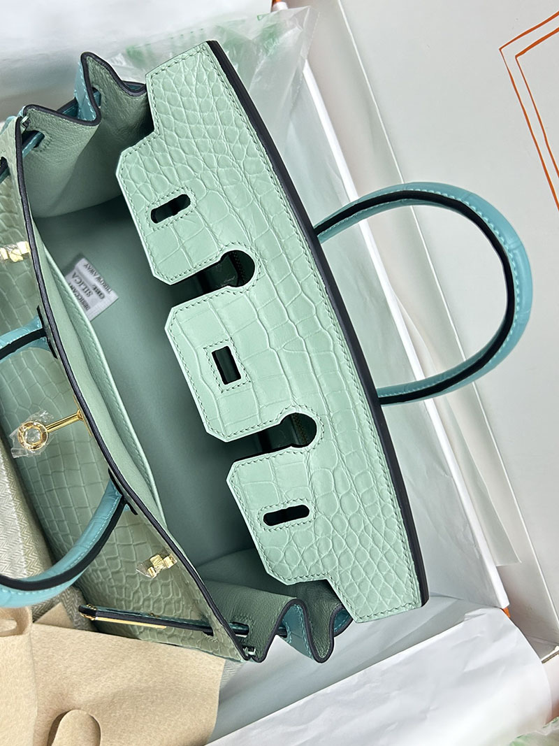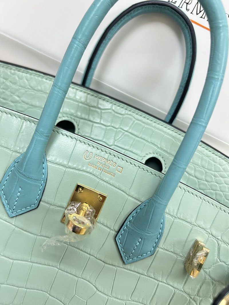 人気色 H品 エルメス バーキン25 パーソナル ブルーサンシール/ミント クロコダイル アリゲーターマット ゴールド金具 2517848 バーキン クロコダイル 定価