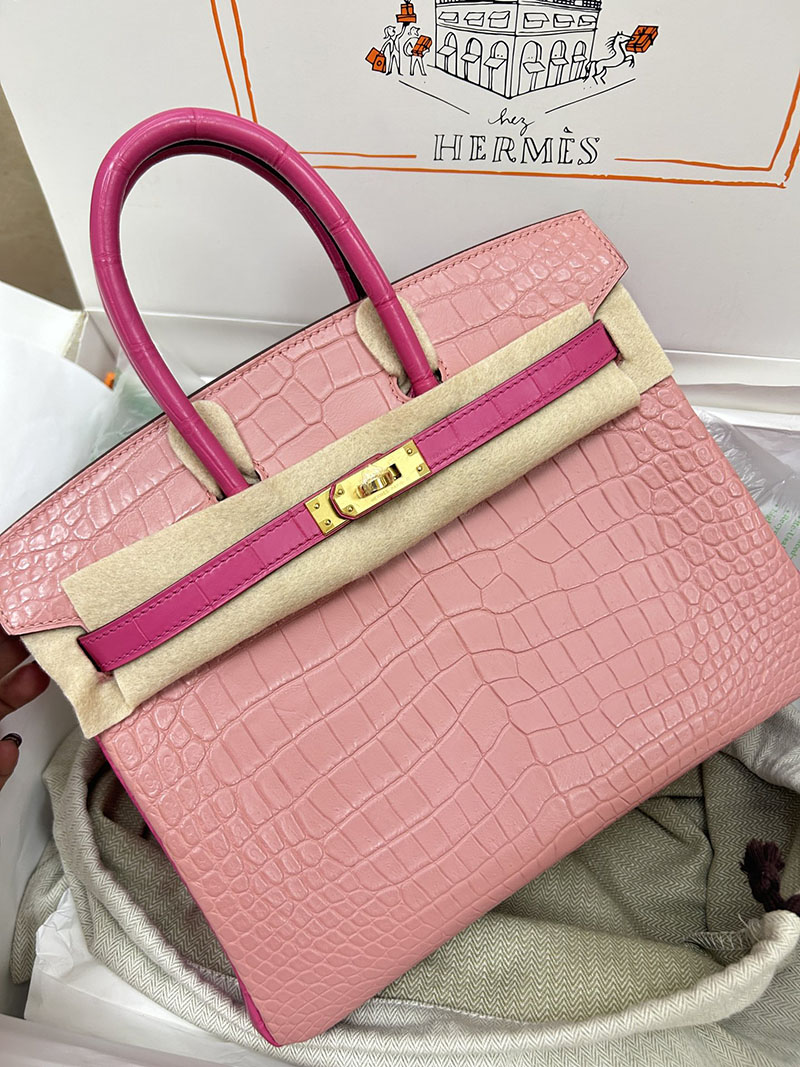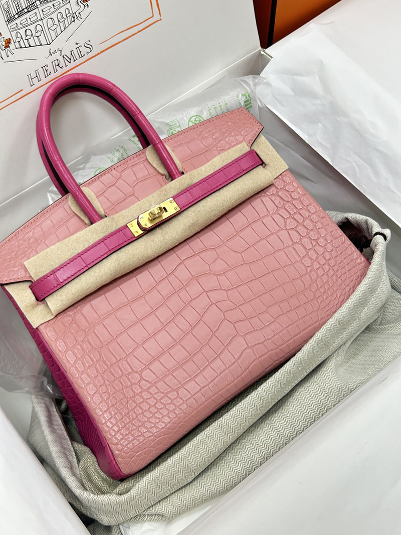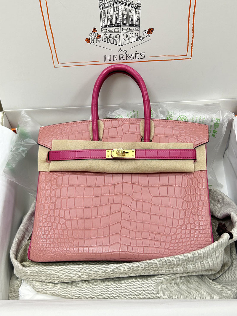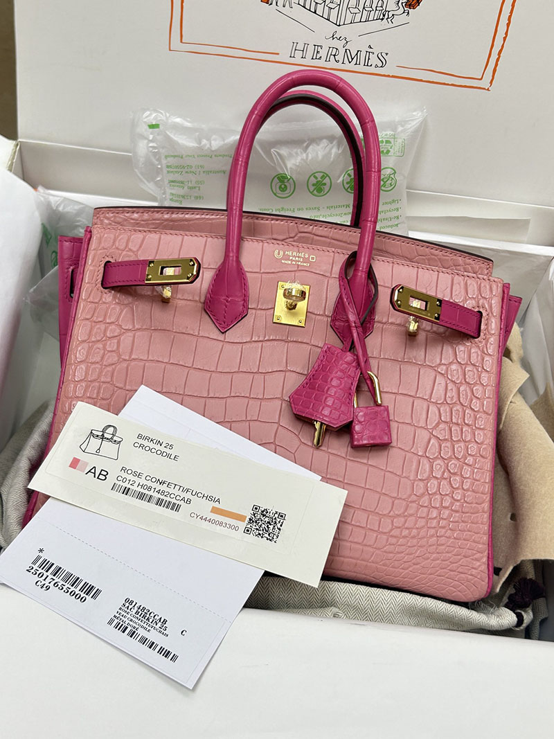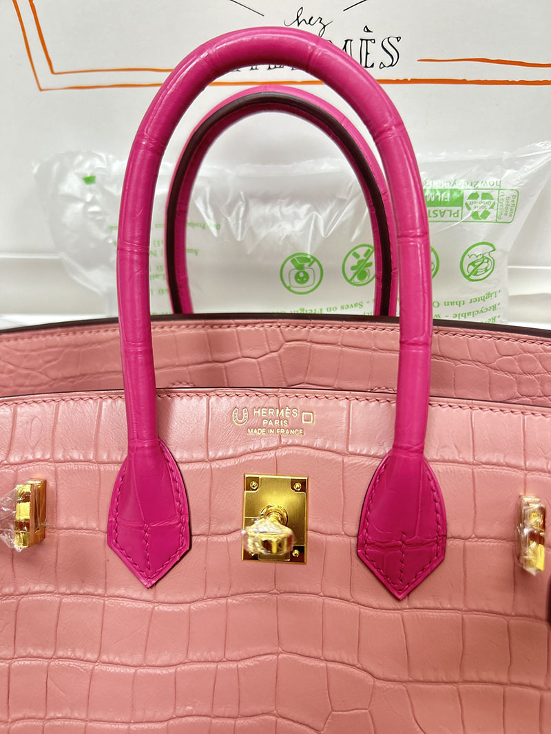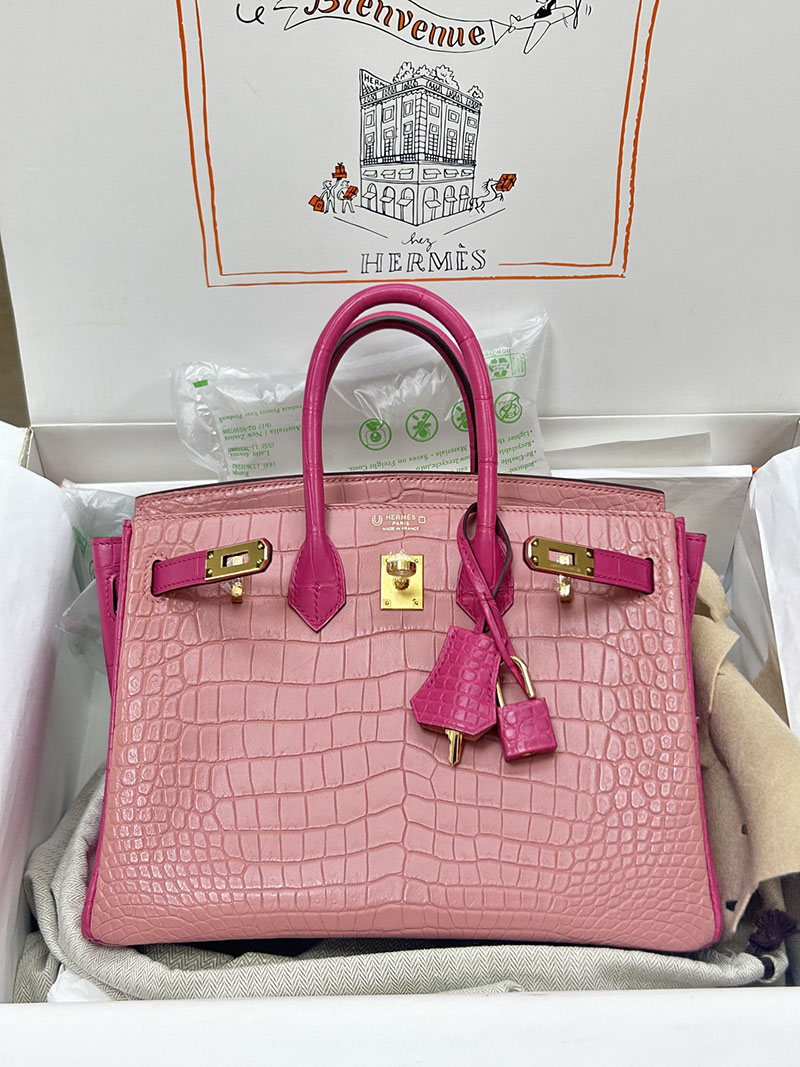 人気色 H品 エルメス バーキン25 パーソナル ブーゲンビリア/ローズショッキング クロコダイル アリゲーターマット ゴールド金具 2517853 バーキン/クロコ 新品
