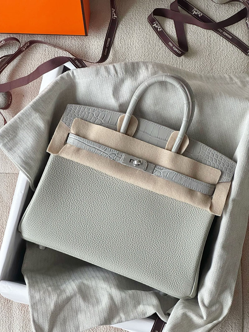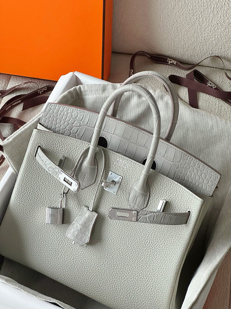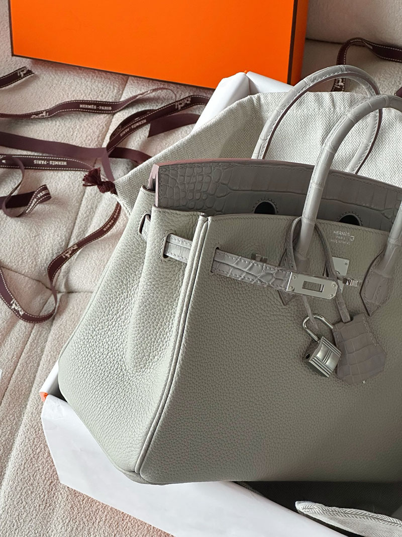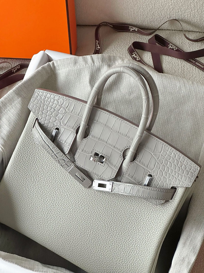 エルメス バーキン25 タッチ パールグレー トゴ/クロコダイル ニロティカスマット シルバー金具 2520761 バーキン 値段 新品