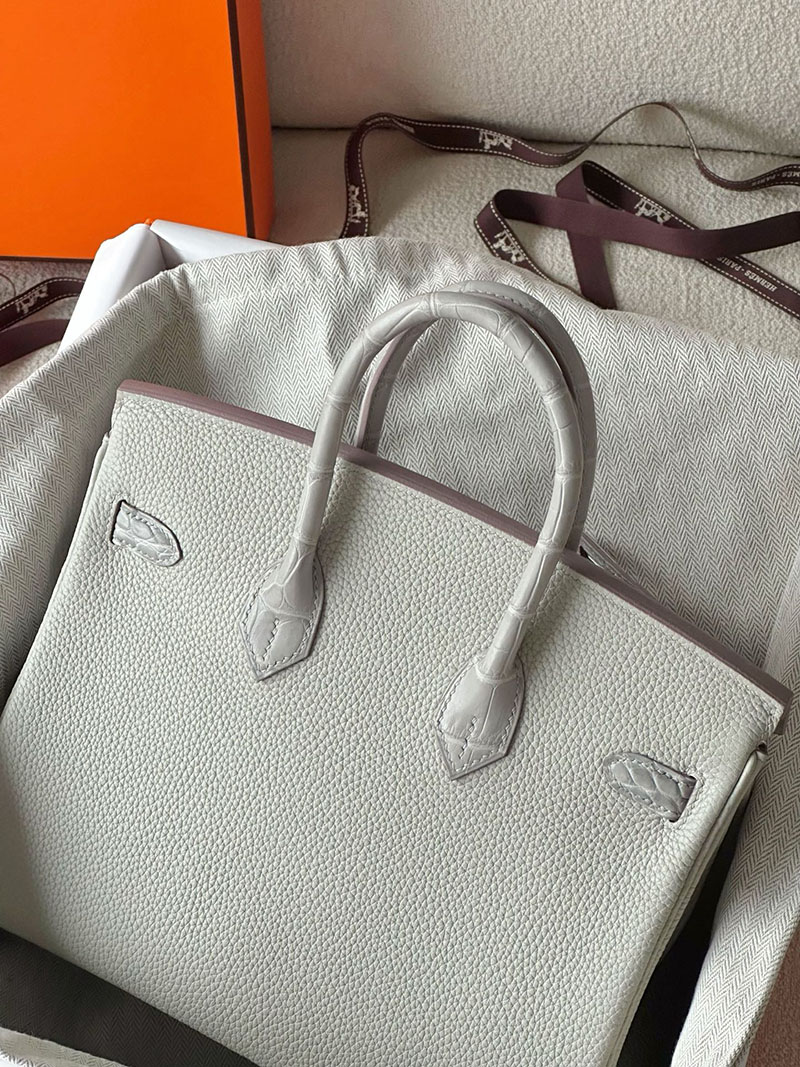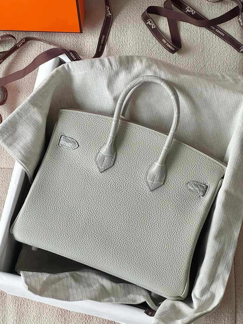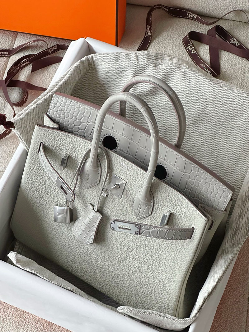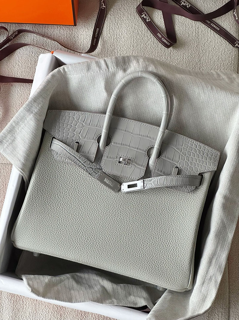 エルメス バーキン25 タッチ パールグレー トゴ/クロコダイル ニロティカスマット シルバー金具 2520761 バーキン 値段 新品