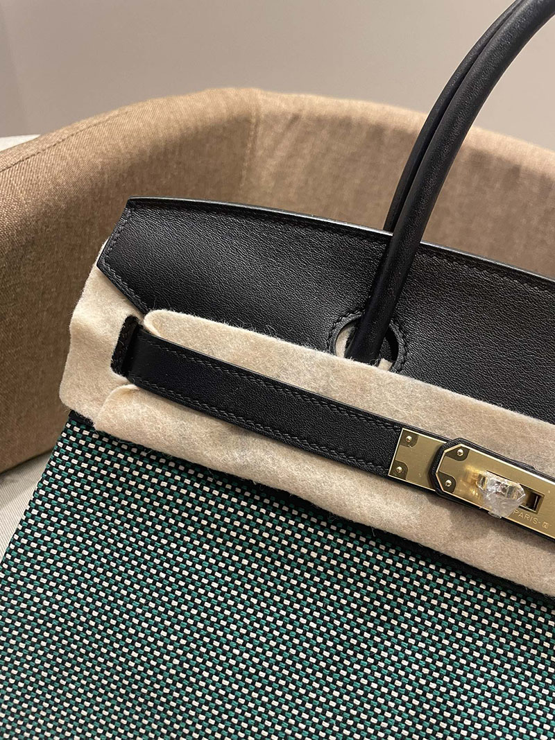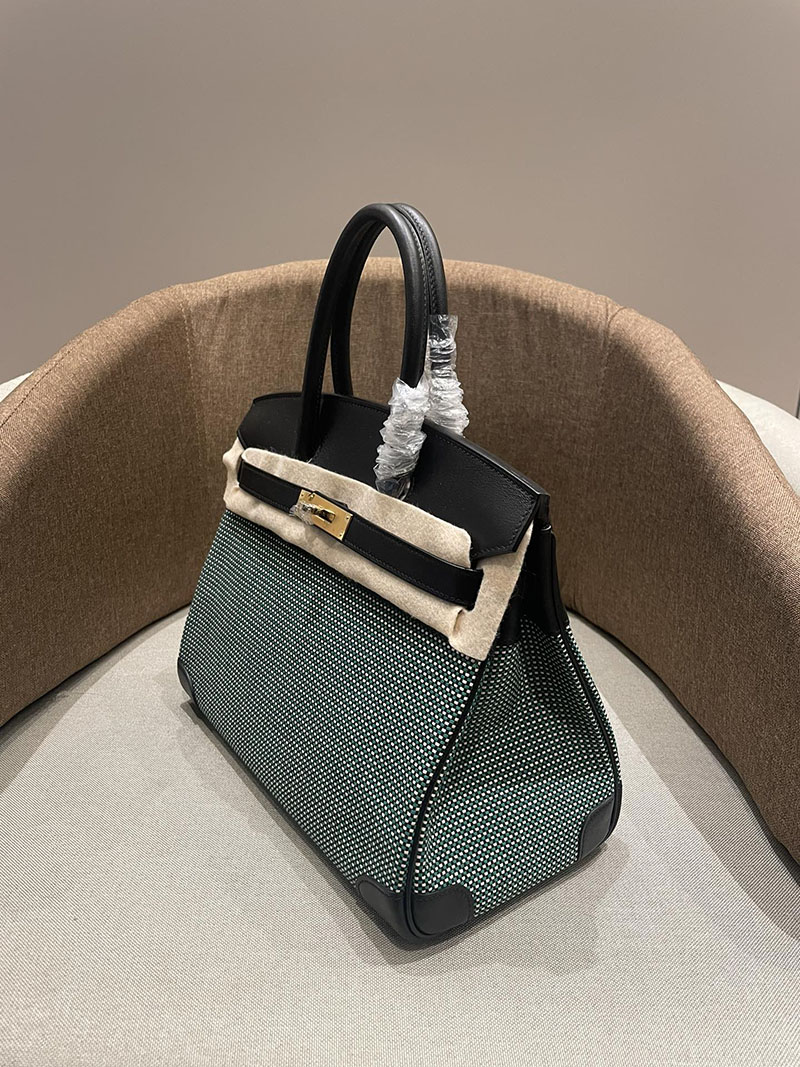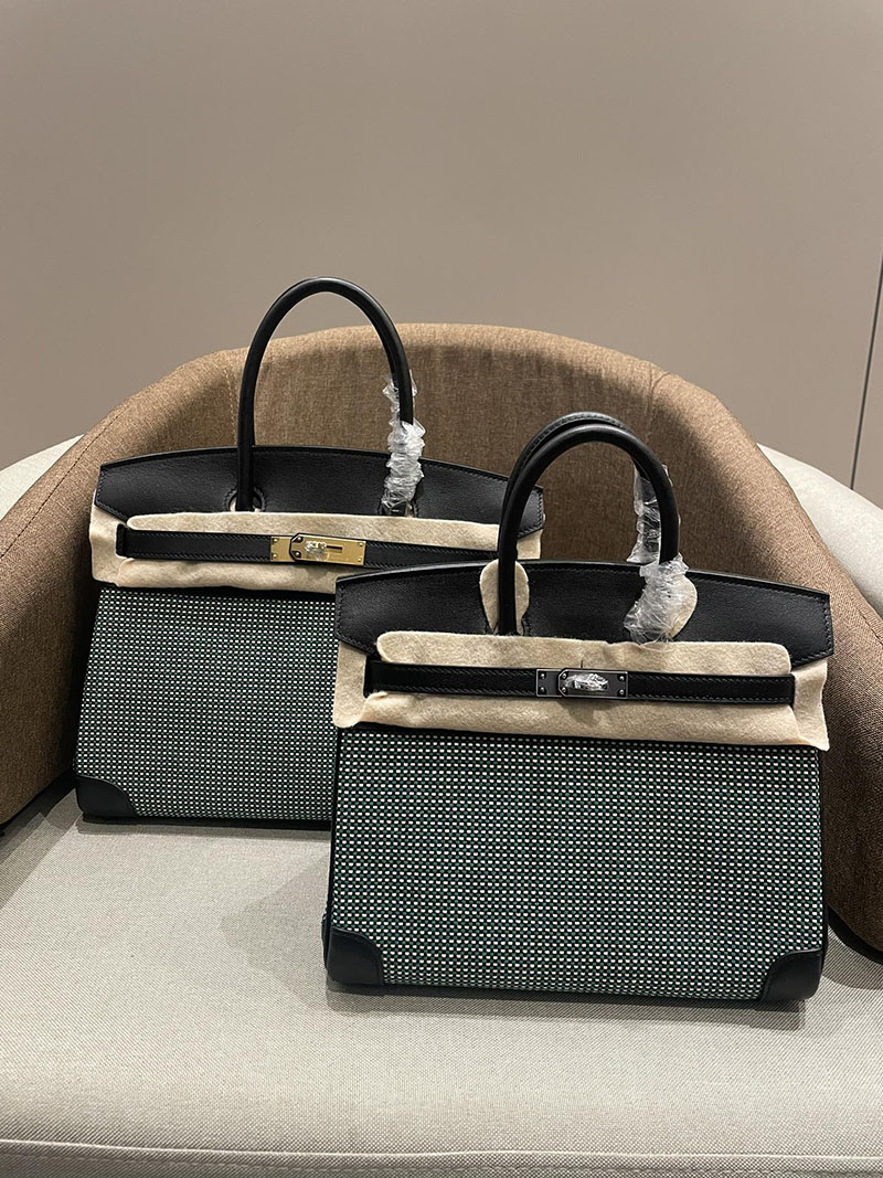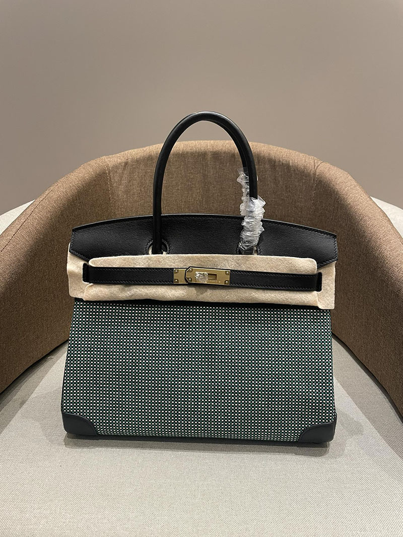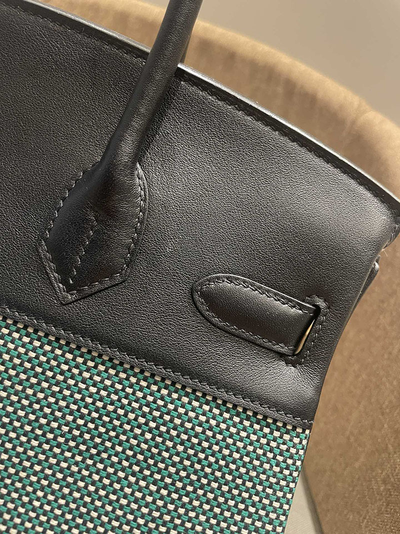 HERMES エルメス バーキン25 クロ×シロ×ミント×クロ トワルキャドリーユ×スイフト ゴールド金具 2520783 バーキン風バッグ