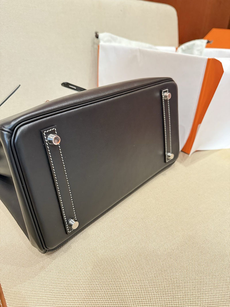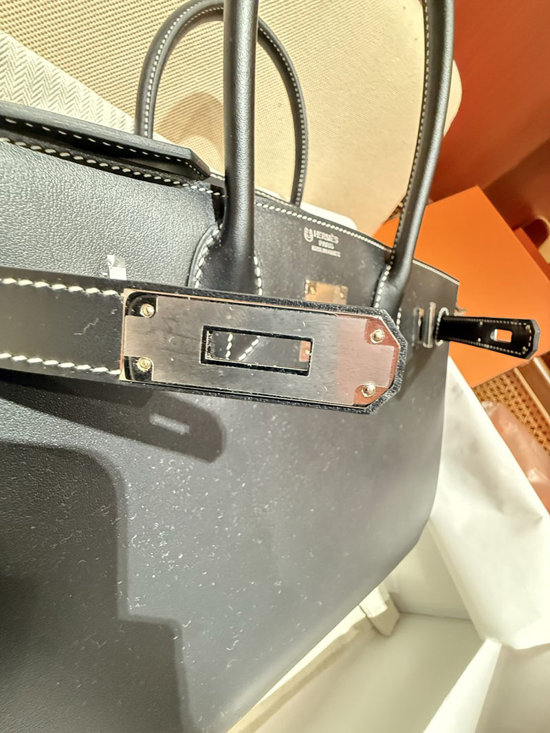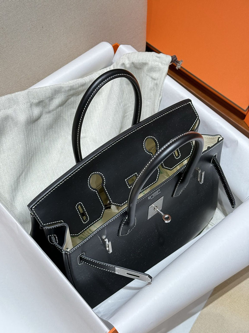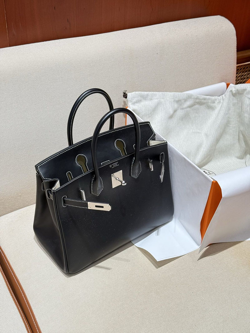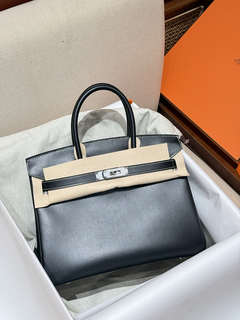 エルメスコピー バーキン25 黒 HERMES バーキン25 黒 ブラック ボックスカーフ シルバー金具 2524173