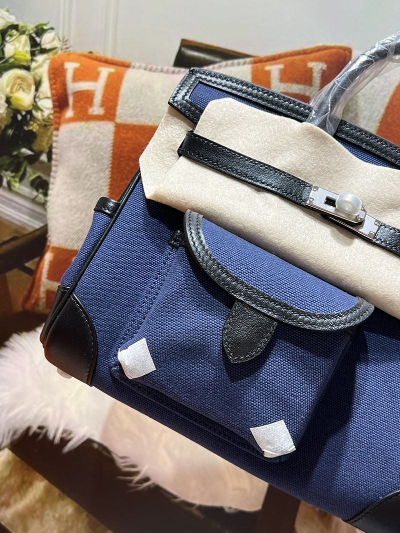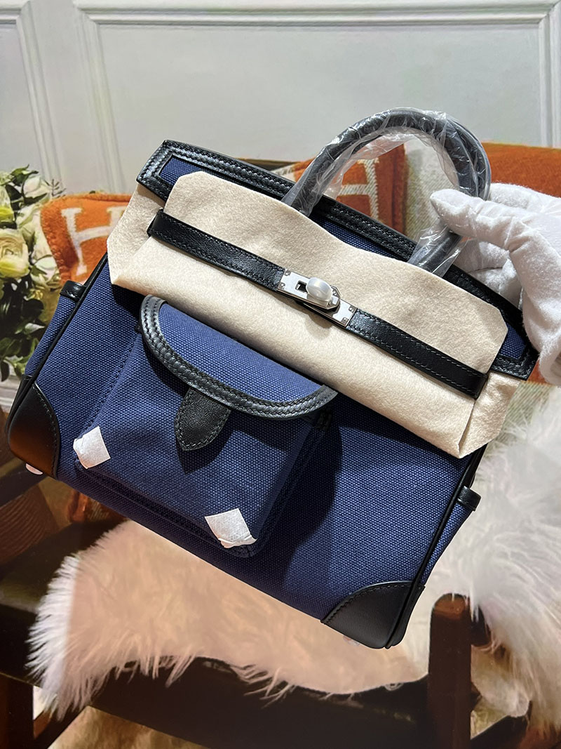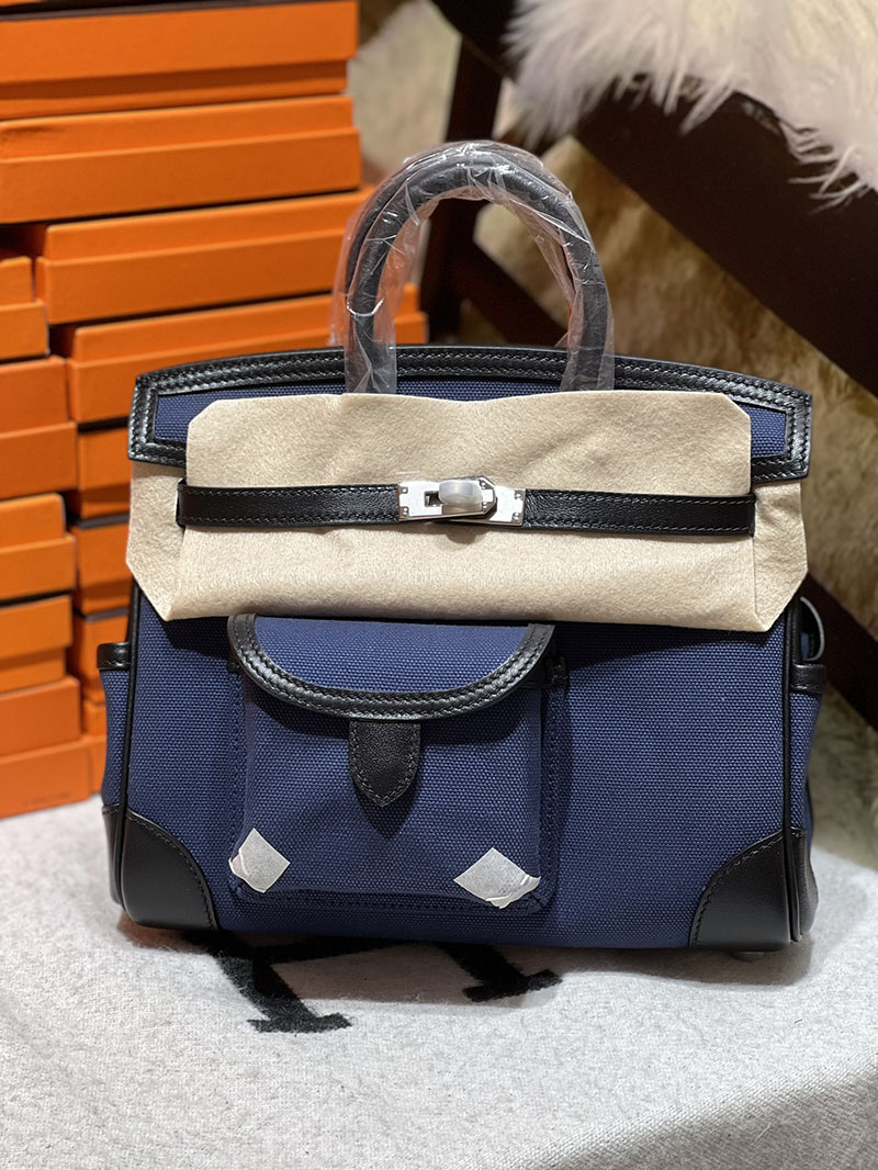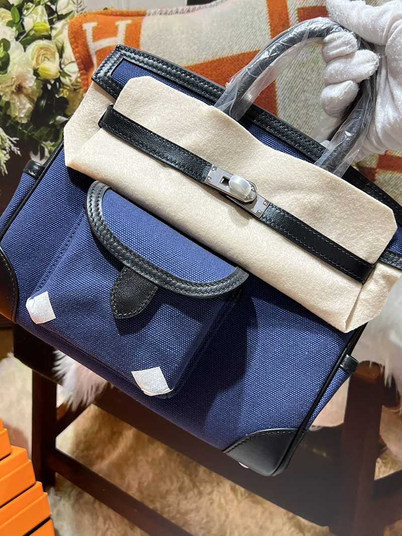 バーキンスーパーコピー HERMES バーキンカーゴ25 ブルーエジェ/ネイビー キャンバス/スイフト シルバー金具 バーキンH品 2524201