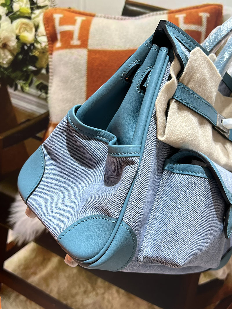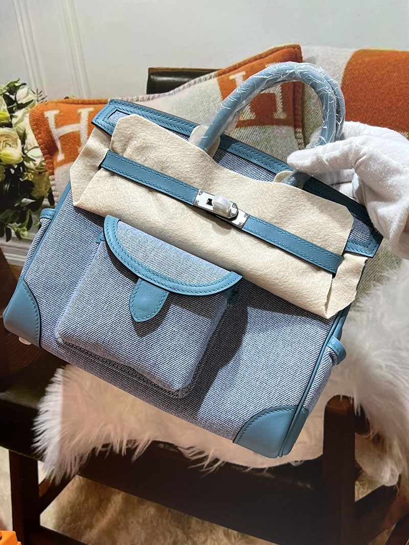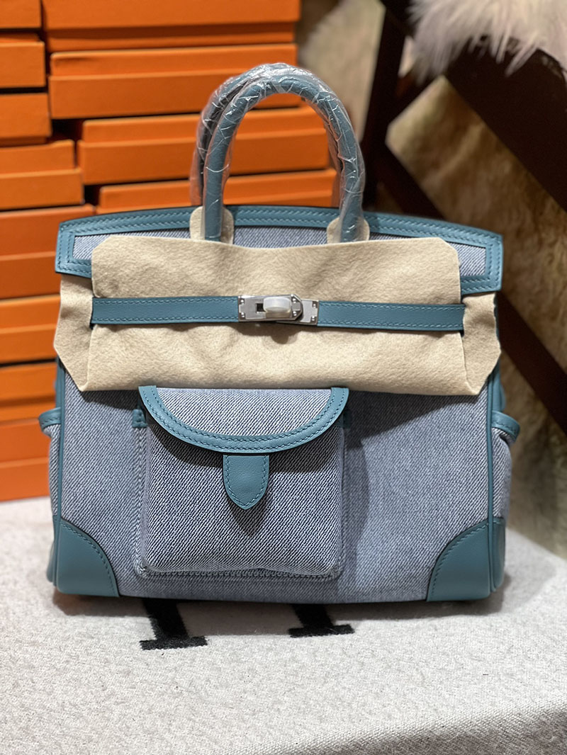 バーキンスーパーコピー HERMES バーキンカーゴ25 ブルージーン キャンバス/スイフト シルバー金具 バーキンH品 2524203
