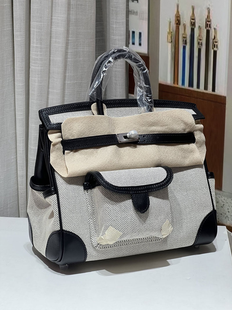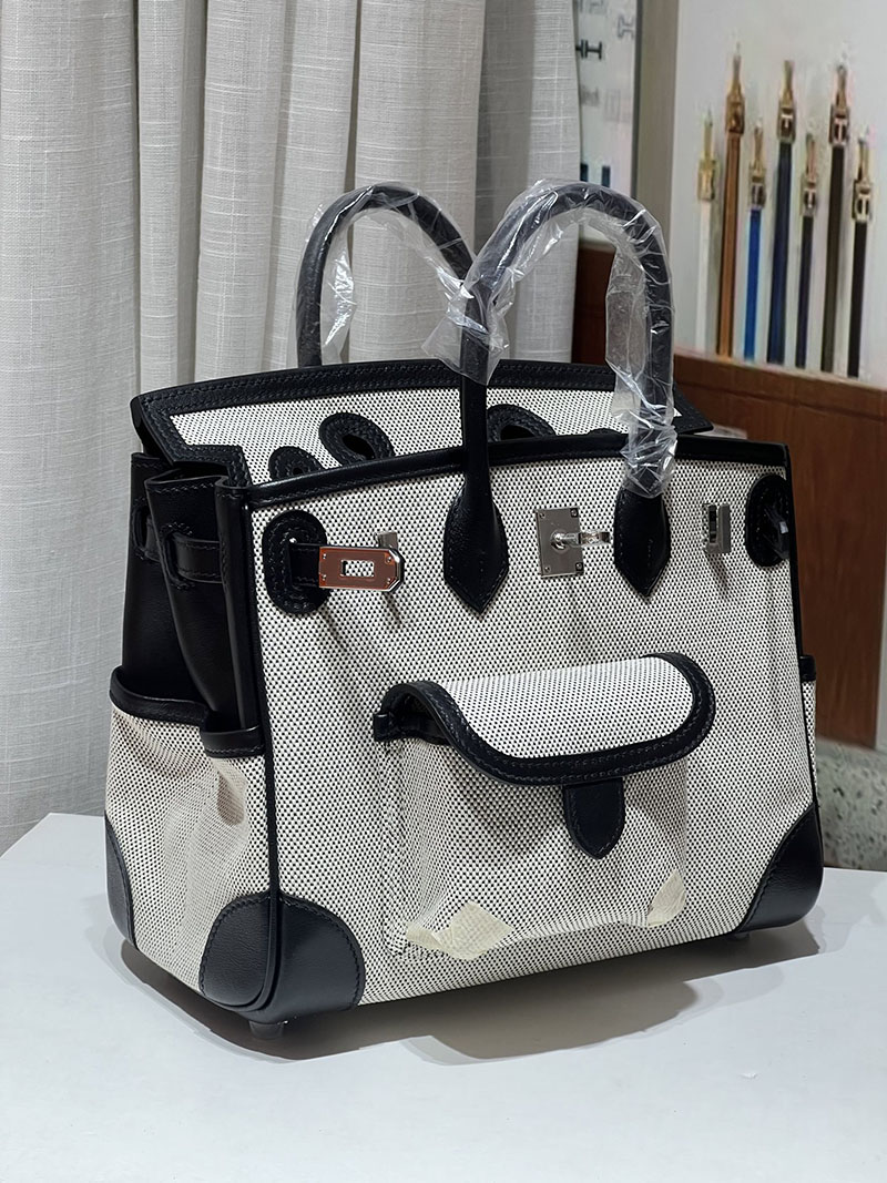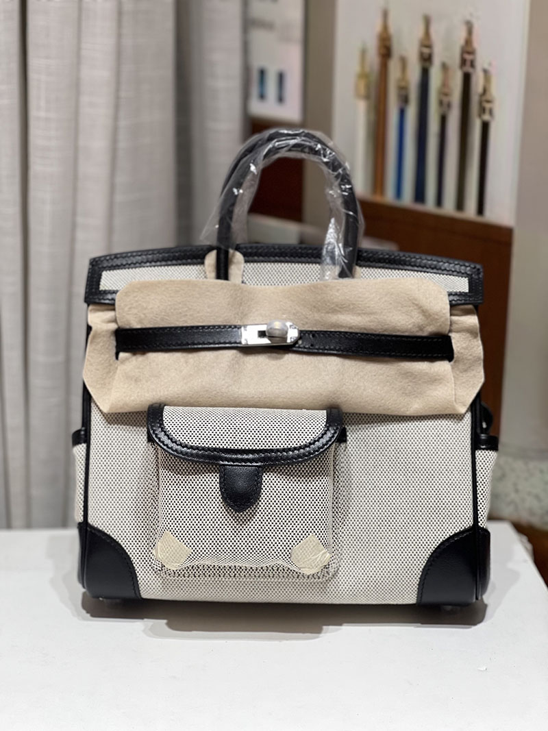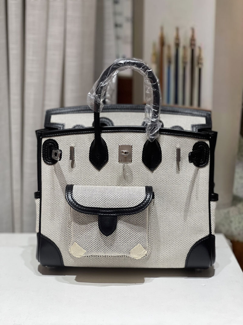 バーキンスーパーコピー HERMES バーキンカーゴ25 グレー/黒 ブラック キャンバス/スイフト シルバー金具 バーキンH品 2524204