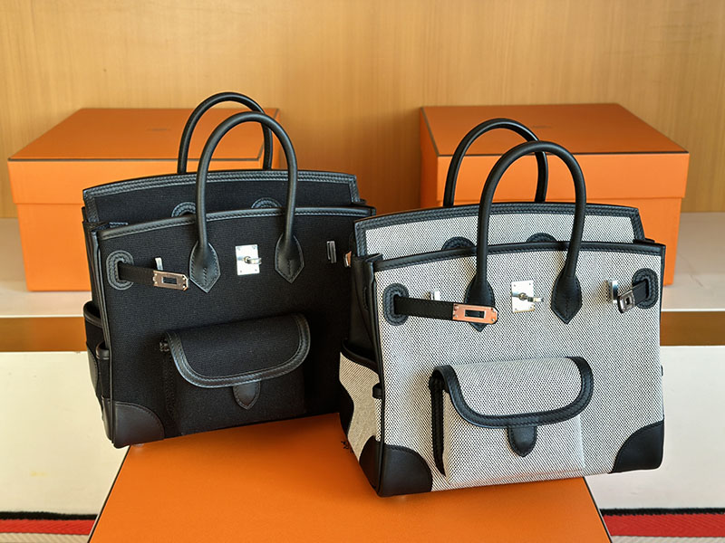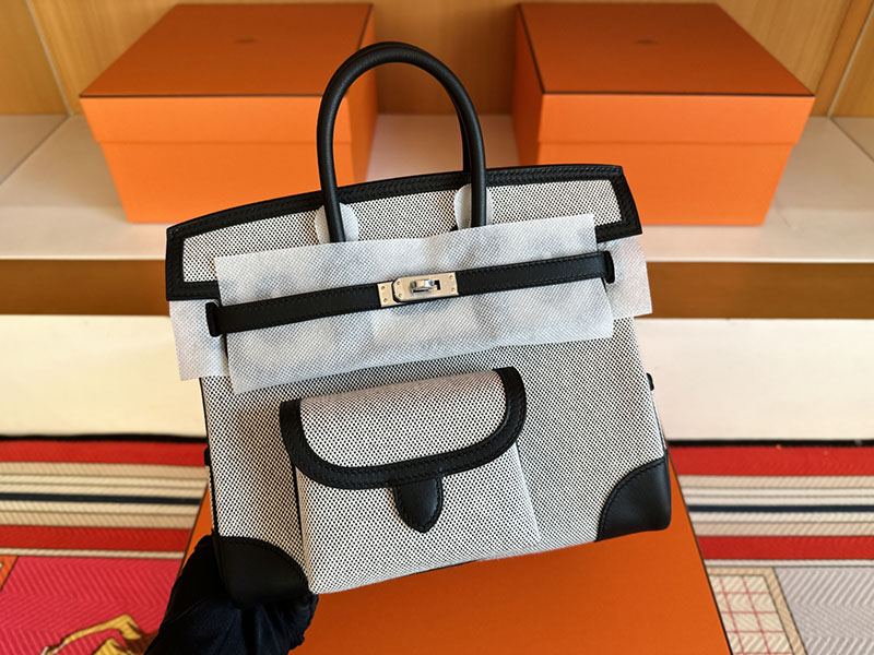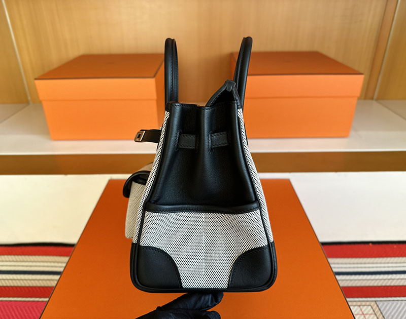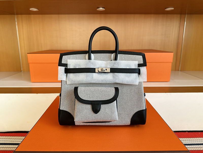バーキン カーゴ 25 定価 HERMES バーキンカーゴ25 グレー/黒 ブラック キャンバス/スイフト シルバー金具 2627838 エルメス 新作バッグ