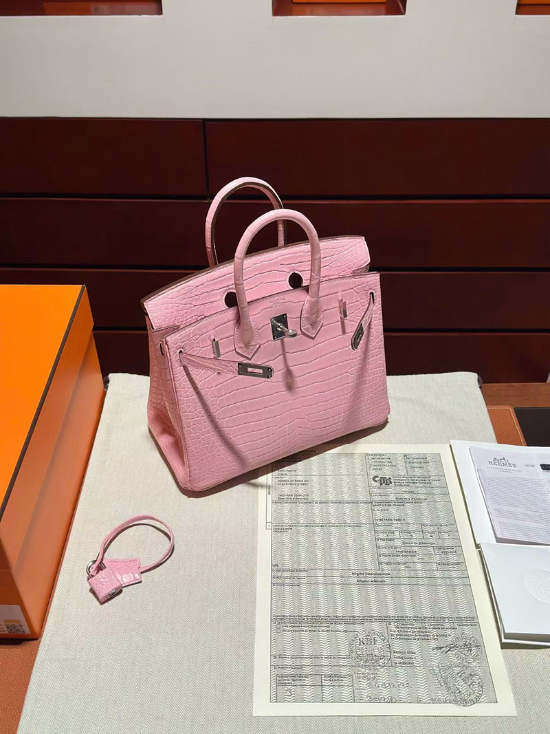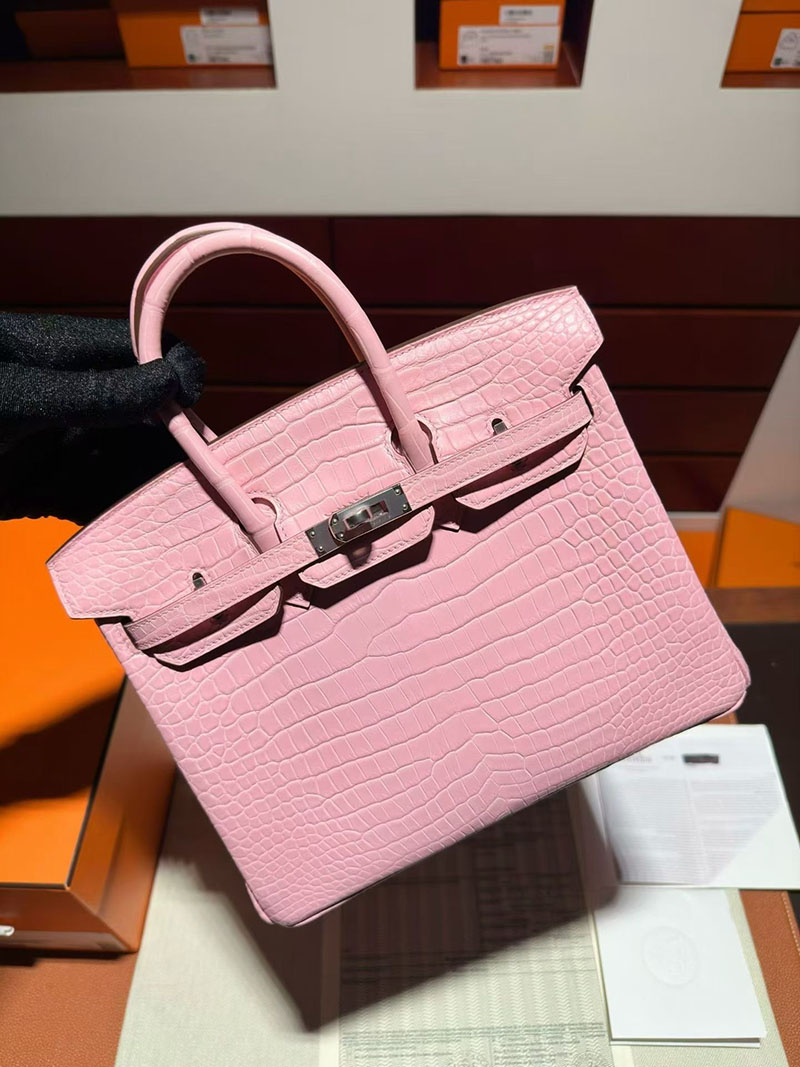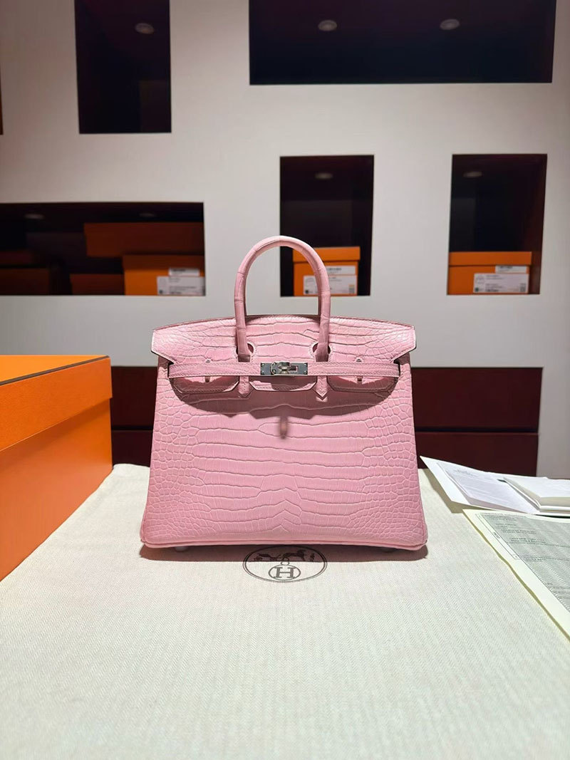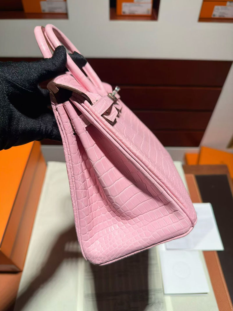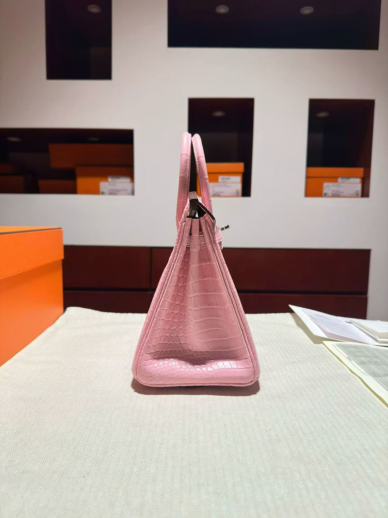 エルメス バーキンバッグ HERMES バーキン25 ピンク クロコダイル ポロサスマット シルバー金具 2630347 バーキン ピンク クロコダイル