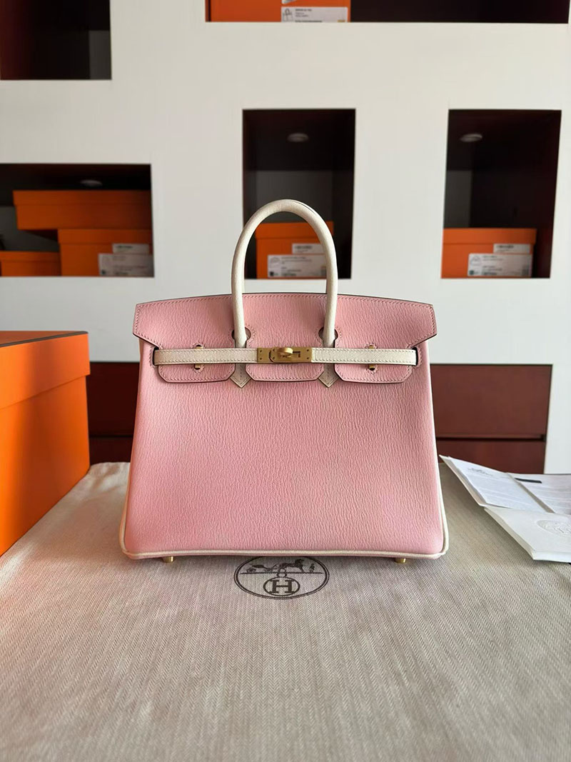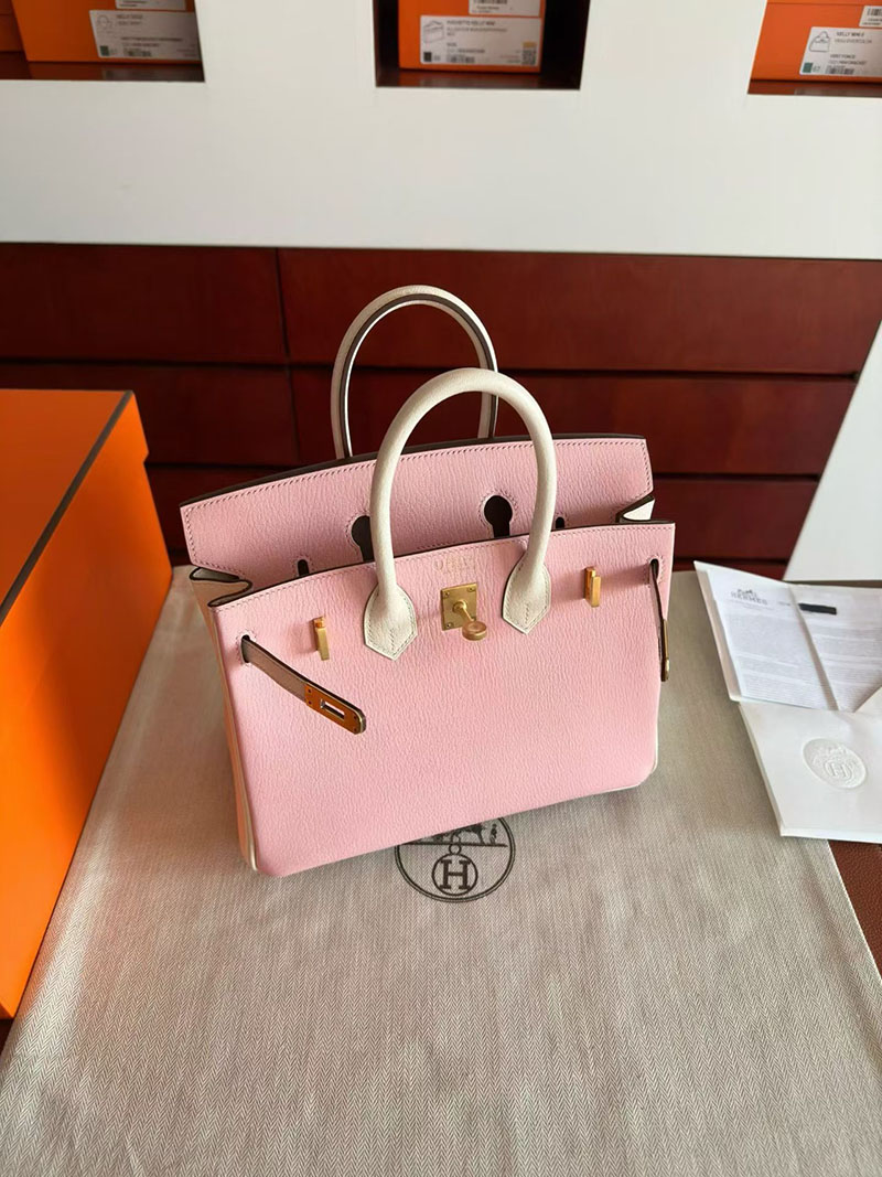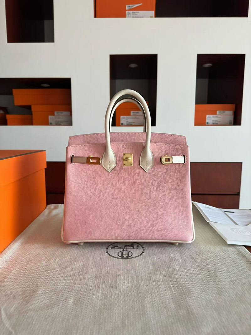 エルメス バーキンバッグ レディース HERMES バーキン25 ローズサクラ/ナタ シェブルミゾル ゴールド金具 2630372 バーキン25 ピンク