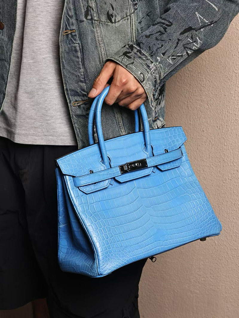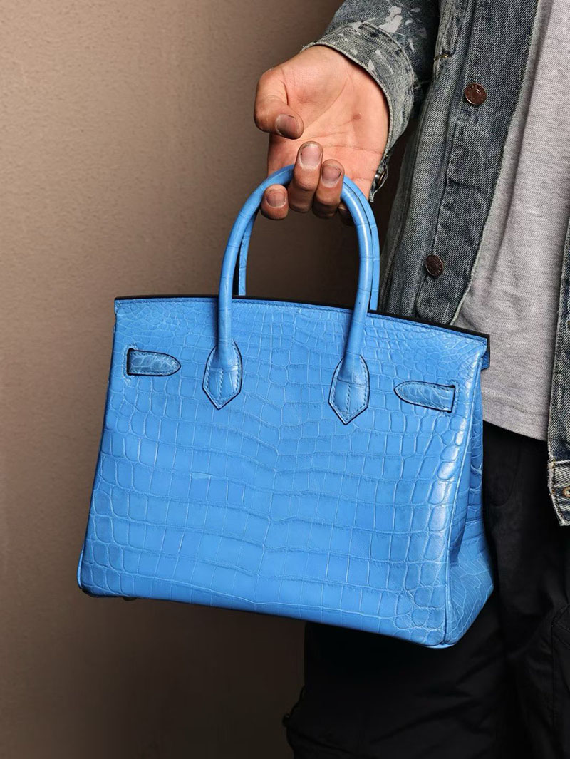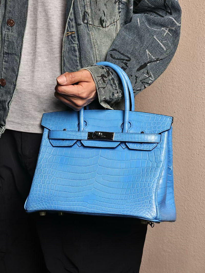 エルメスコピー バーキン30 ポロサス HERMES バーキン30 ブルーゼリージュ クロコダイル ポロサスマット シルバー金具 2524189