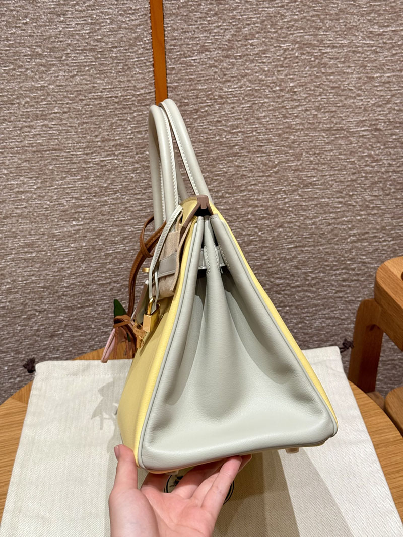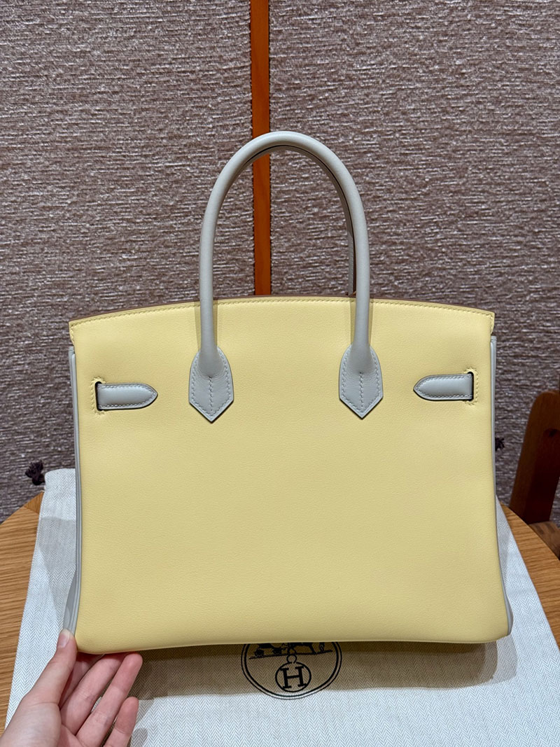 エルメスコピー バーキン30 定価 HERMES バーキン30 ジョーヌプッサン/パールグレー スイフト ゴールド金具 2524469