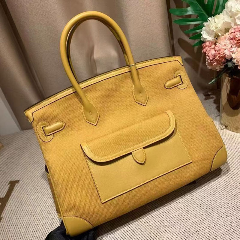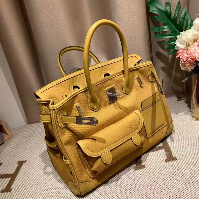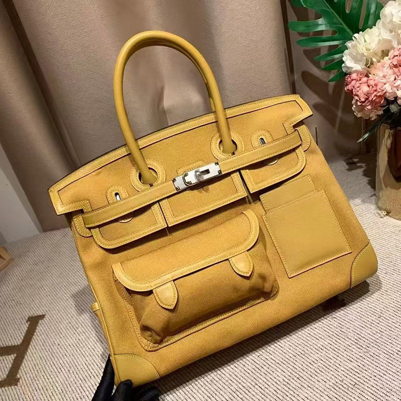 Birkin 35CM Cargo 2S Sesame Canvas / Swift Leather Silver Hardware