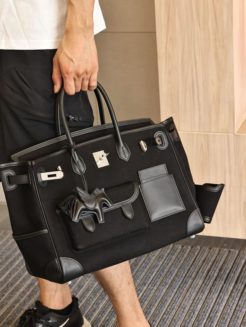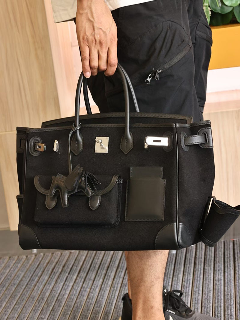 エルメスコピー バーキン35 定価 HERMES バーキン35 カーゴ 黒 ブラック キャンバス/スイフト シルバー金具 2524166