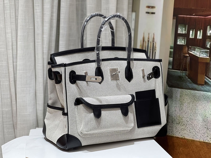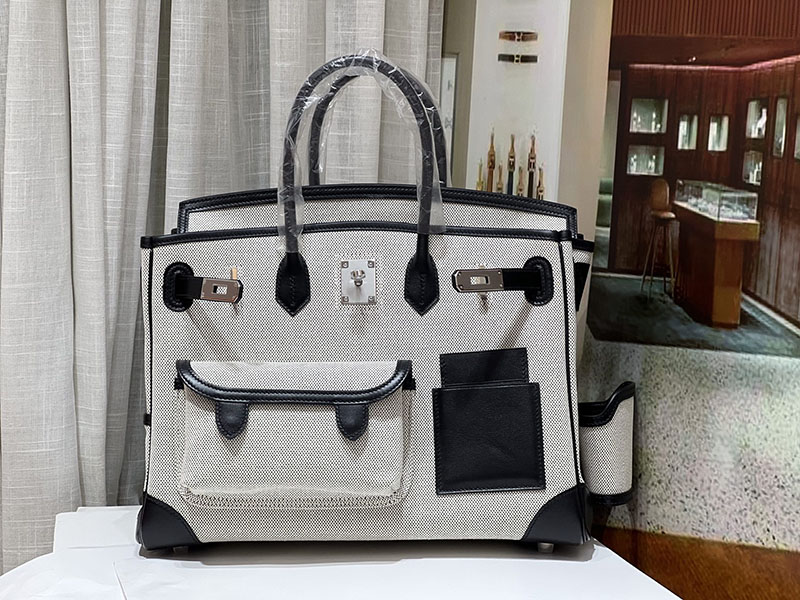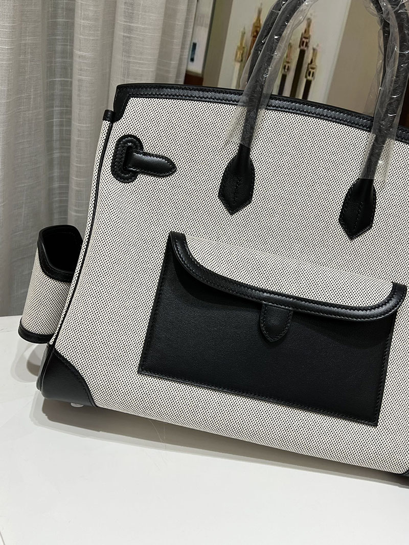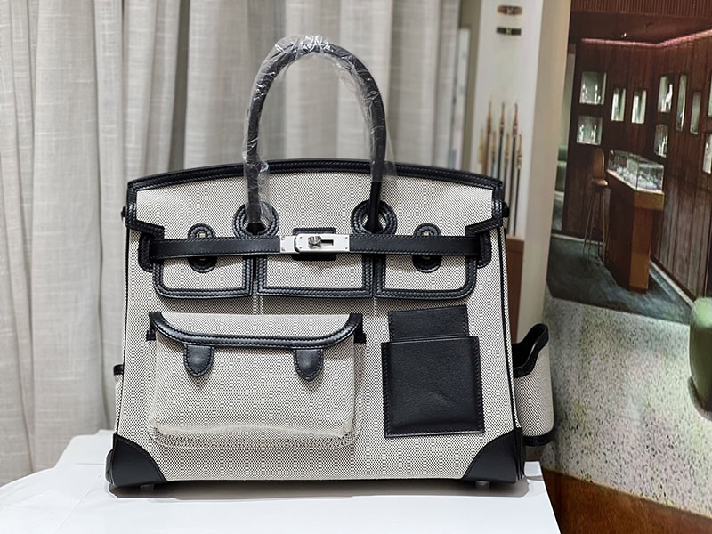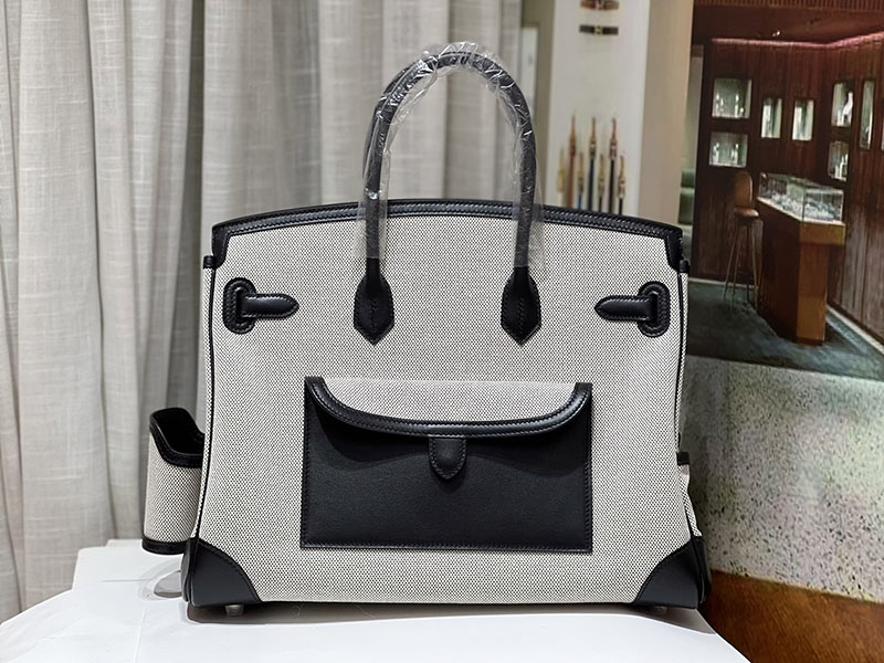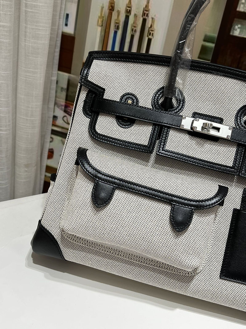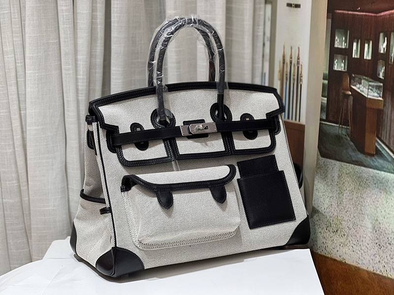 バーキンスーパーコピー HERMES バーキンカーゴ35 黒 ブラック/グレー キャンバス/スイフト シルバー金具 バーキンH品 2524207