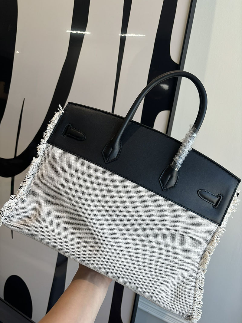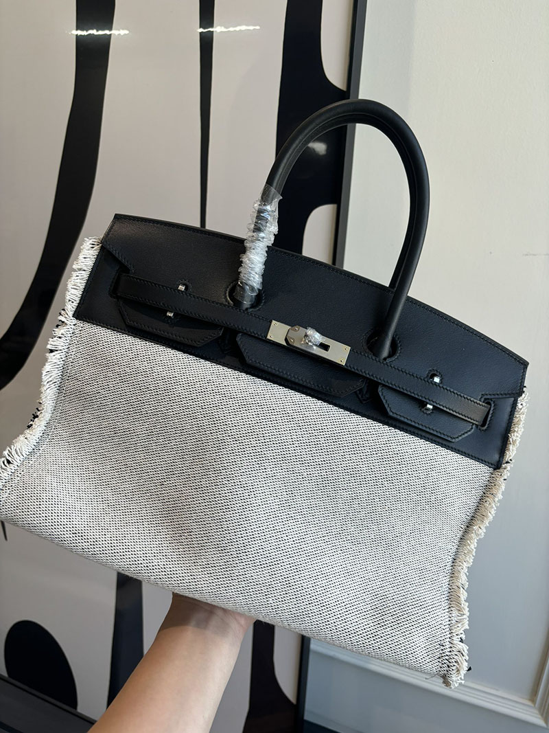 HERMES バーキン フレイ・フレイ 35cm エクリュ×クロ ツイルアッシュ×スイフト シルバー金具 2526310 バーキン フレイ フレイ 定価