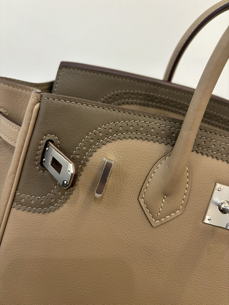 エルメス バーキンバッグ 定価 HERMES バーキン25 ギリーズ エトゥープ/トゥルティエールグレー スイフト シルバー金具 バーキン超N品 2524304