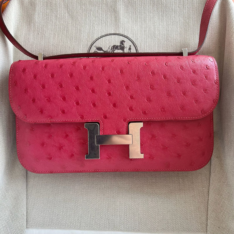 エルメス コンスタンス1 エラン ローズティリアン オーストリッチ シルバー金具 2521191 コンスタンスエラン コーデ