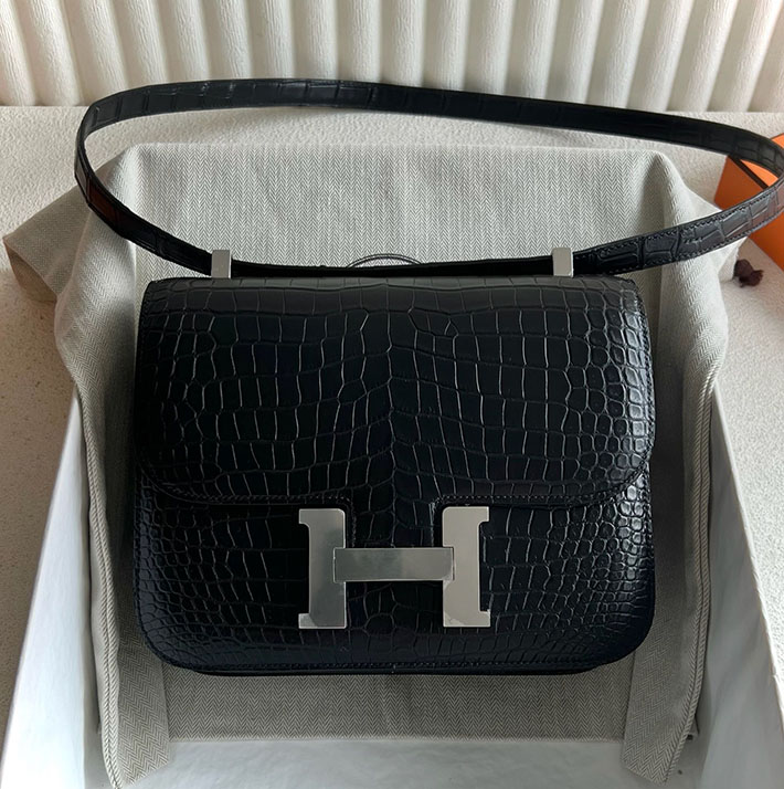 コンスタンス クロコ 定価 エルメス コンスタンス3 24MM 黒 ブラック クロコダイル ポロサスマット シルバー金具 2025定価 2513286