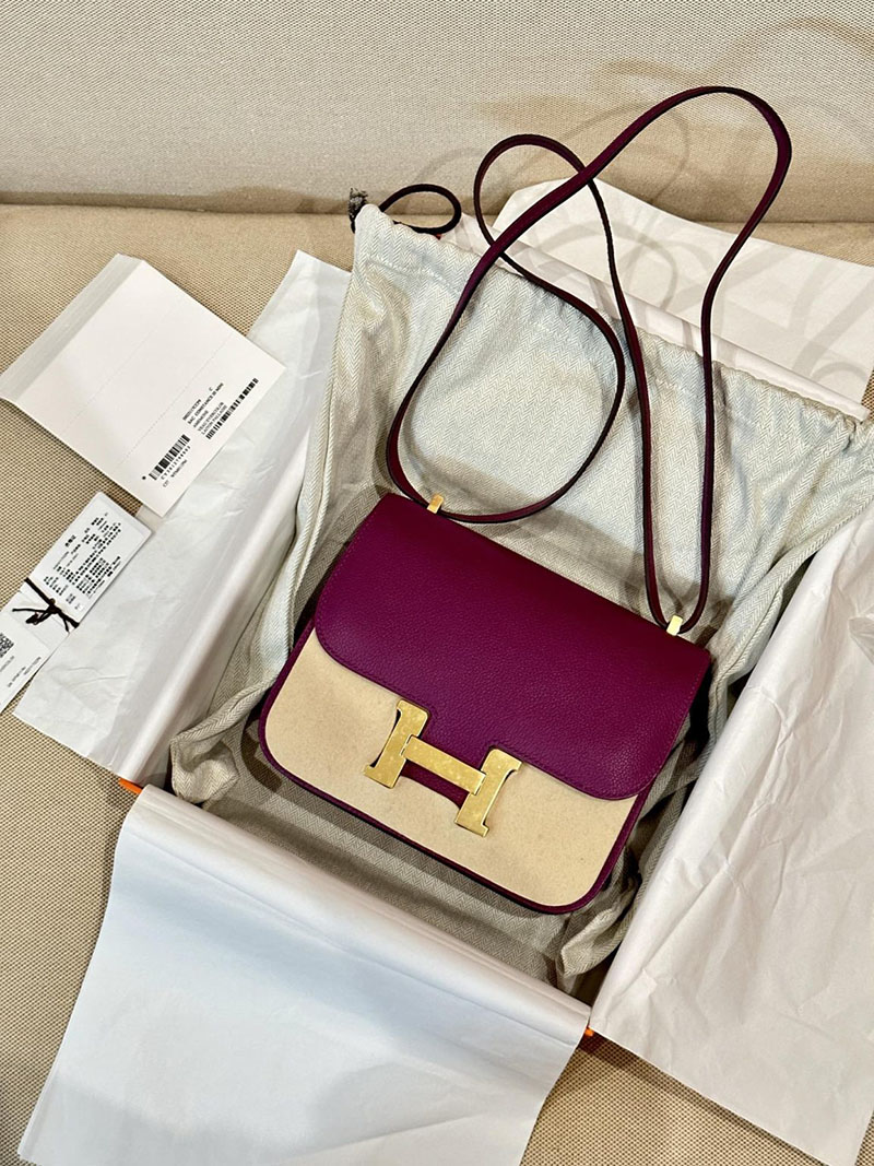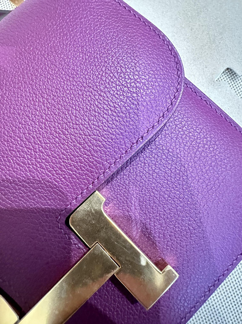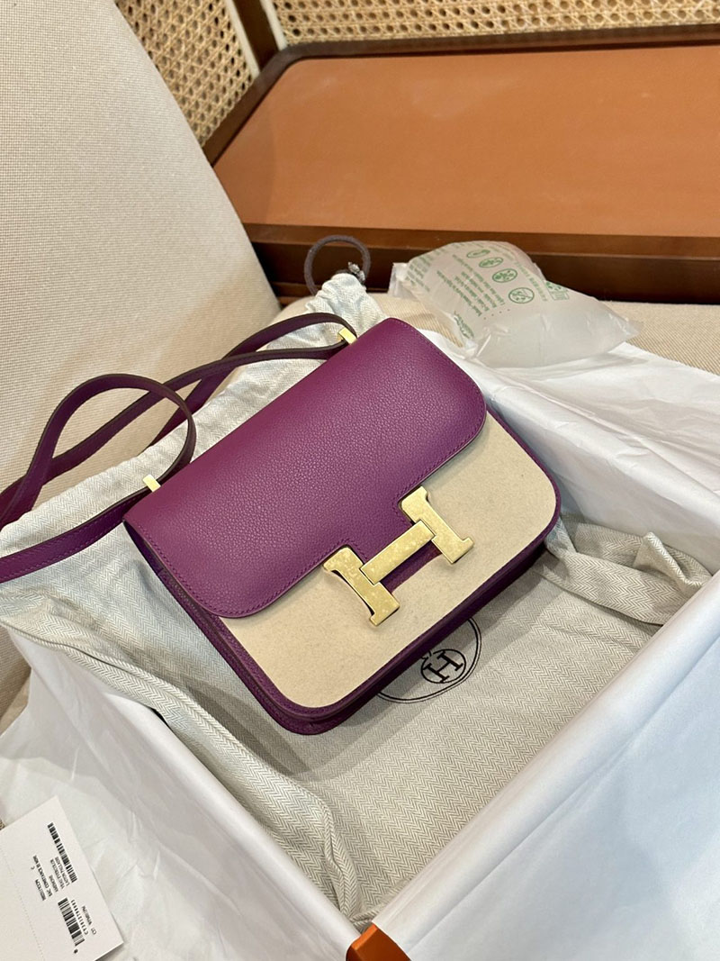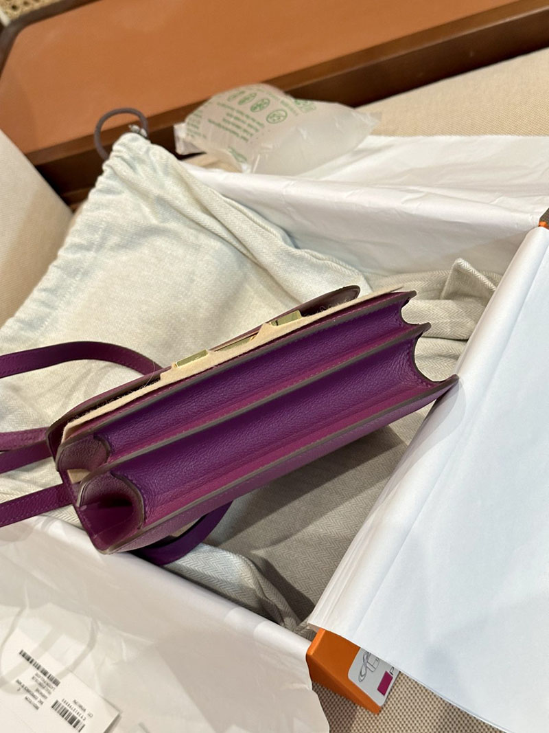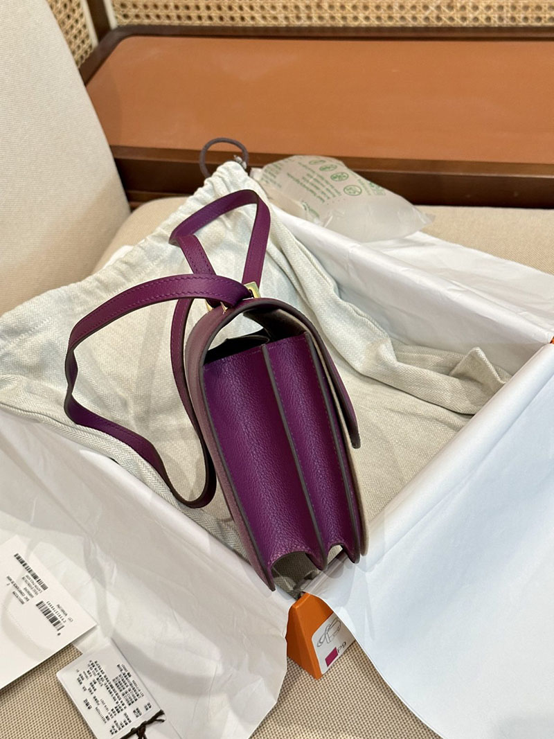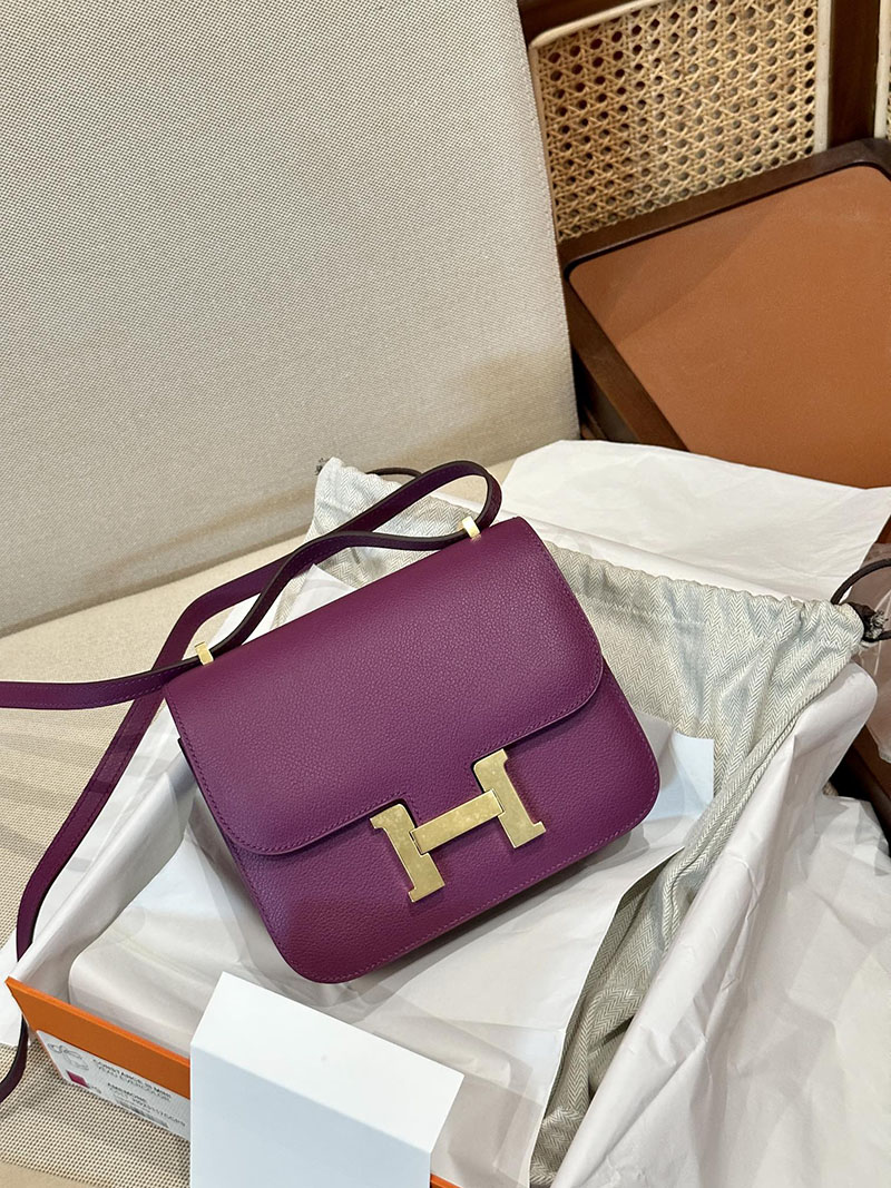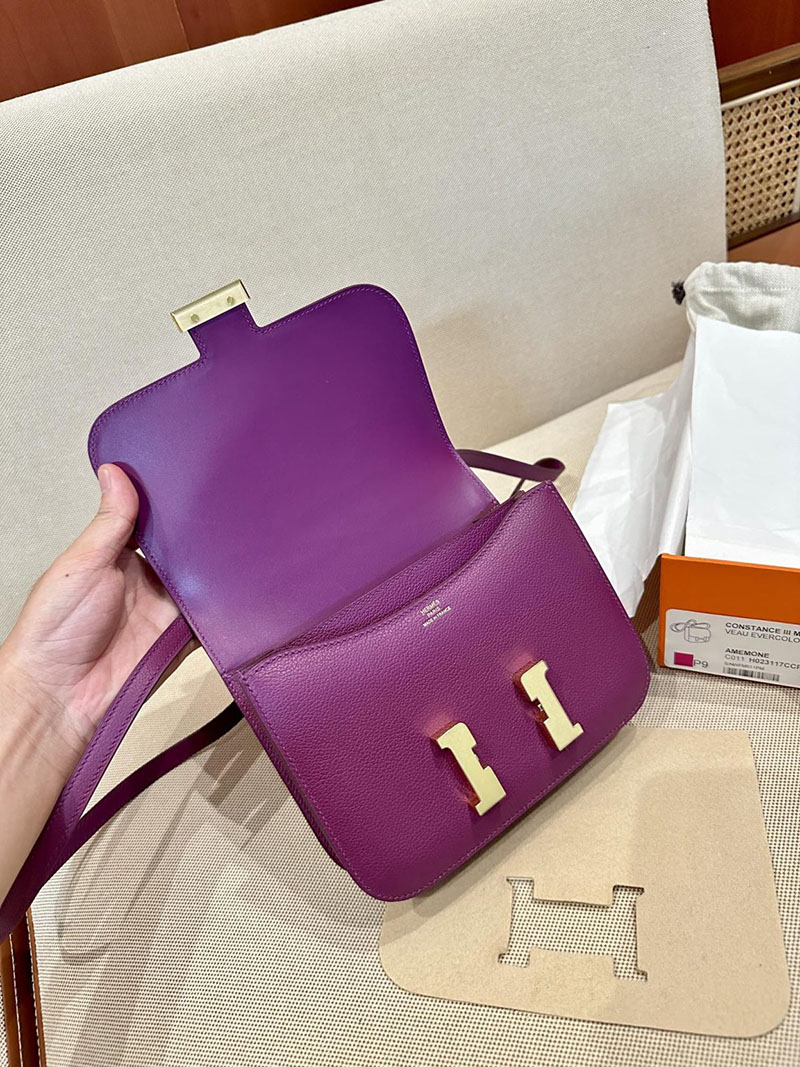 Hermes Bag Images Constance 19CM Evecolor Leather P9 Anemone Gold Hardware