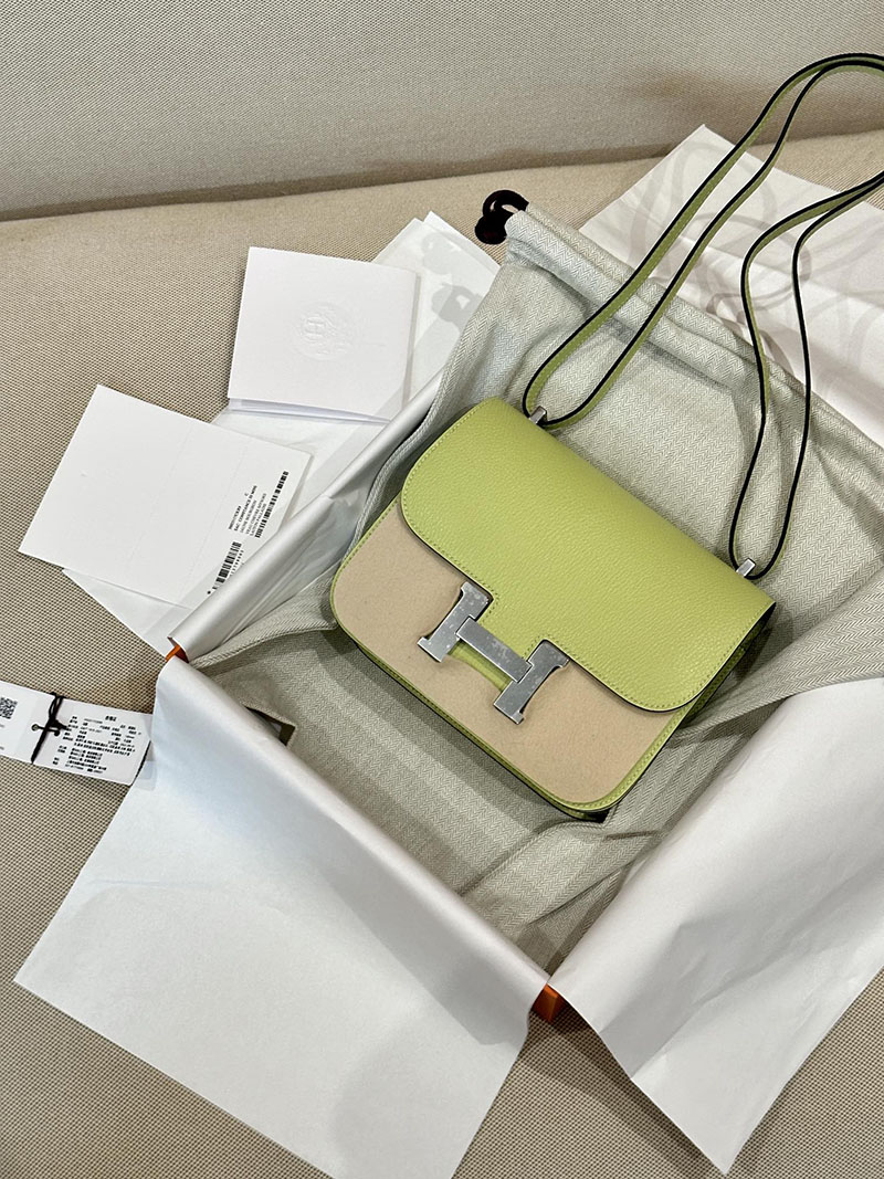 エルメス HERMES コンスタンス3 ミニ ジョーヌブルジョン シェブルミゾル シルバー金具 2412869 旅行 ショルダーバッグ レディース 軽い