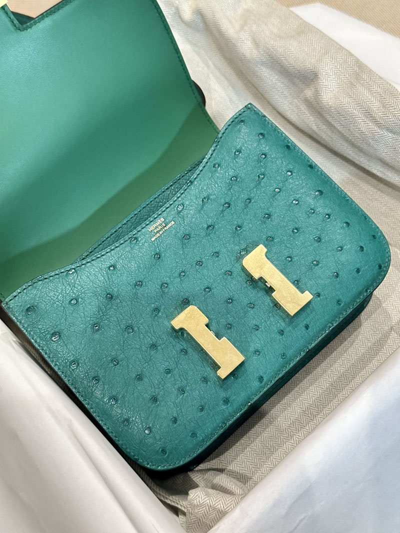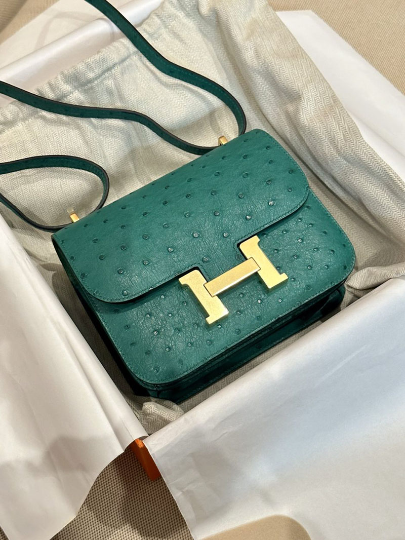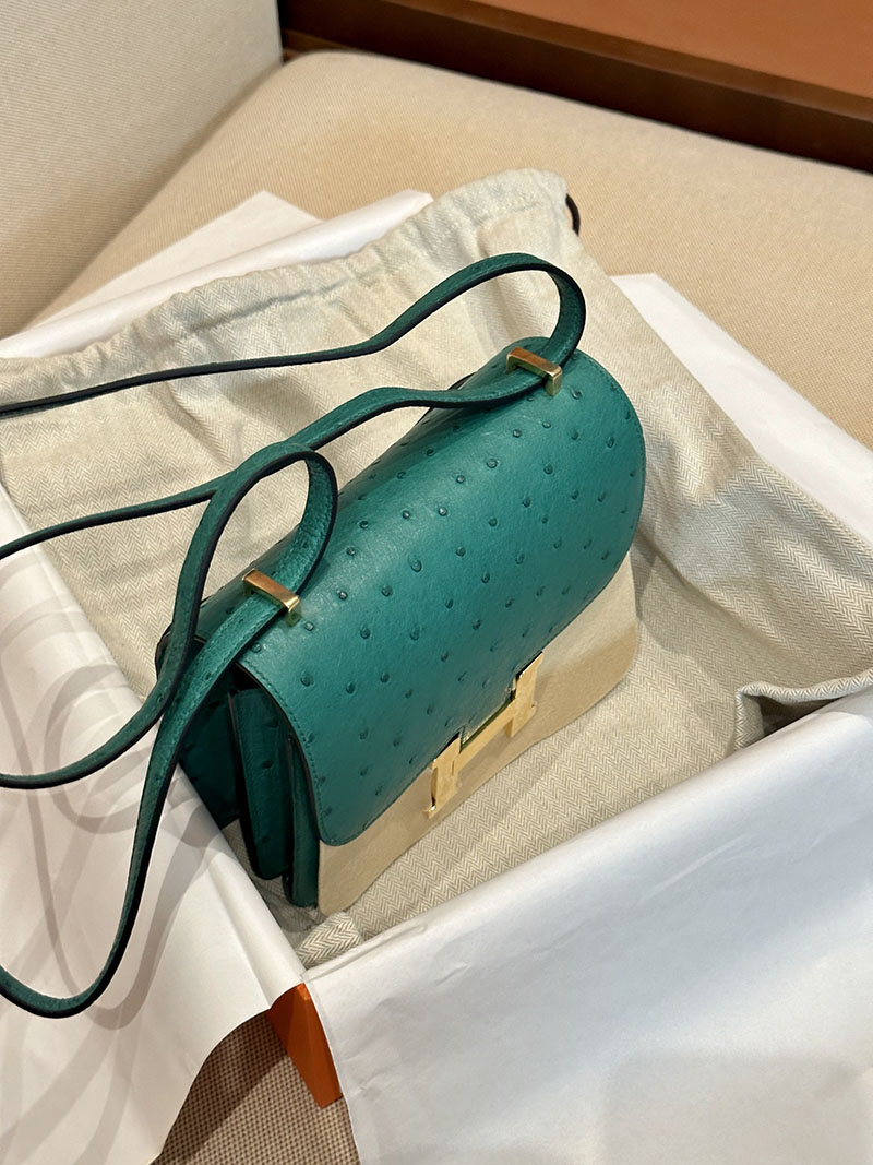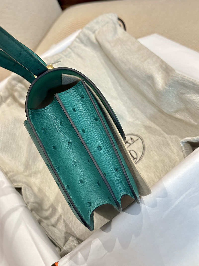 Constance 19CM Ostrich Leather U4 Vert Vertigo Gold hardware
