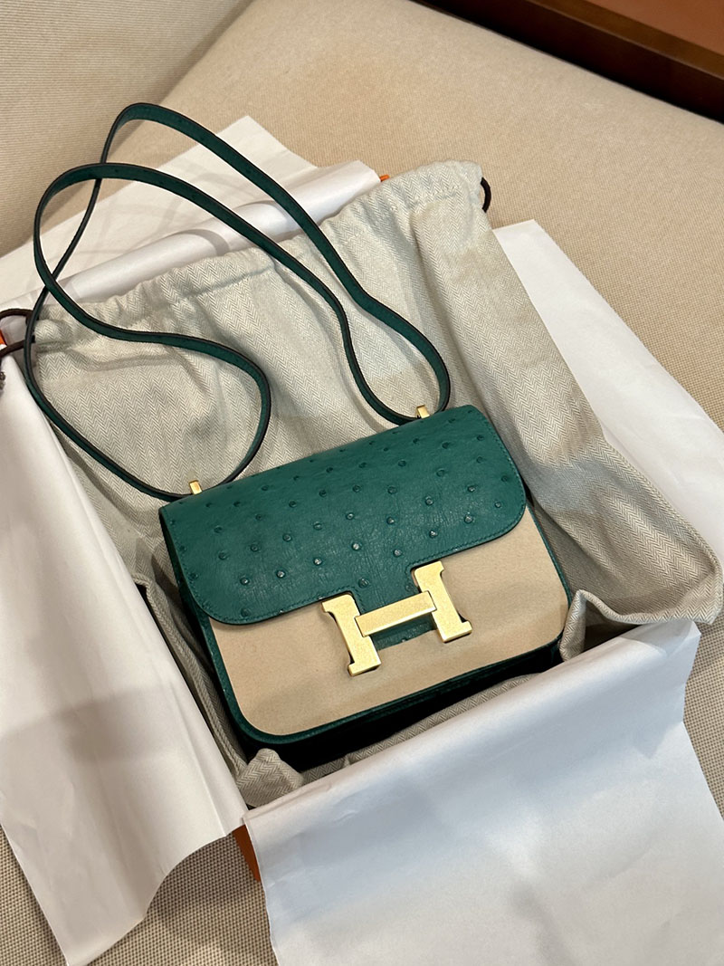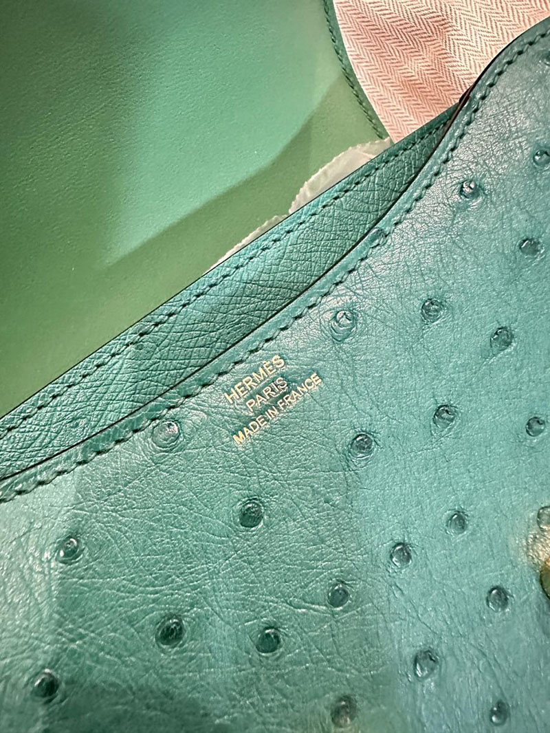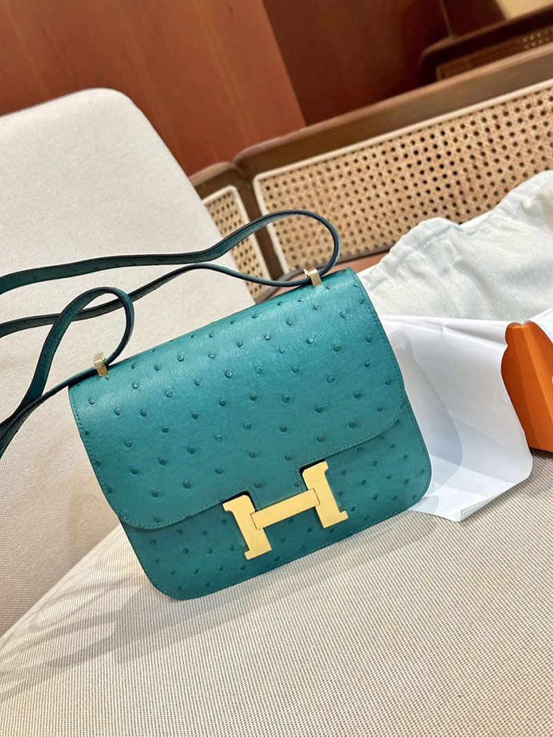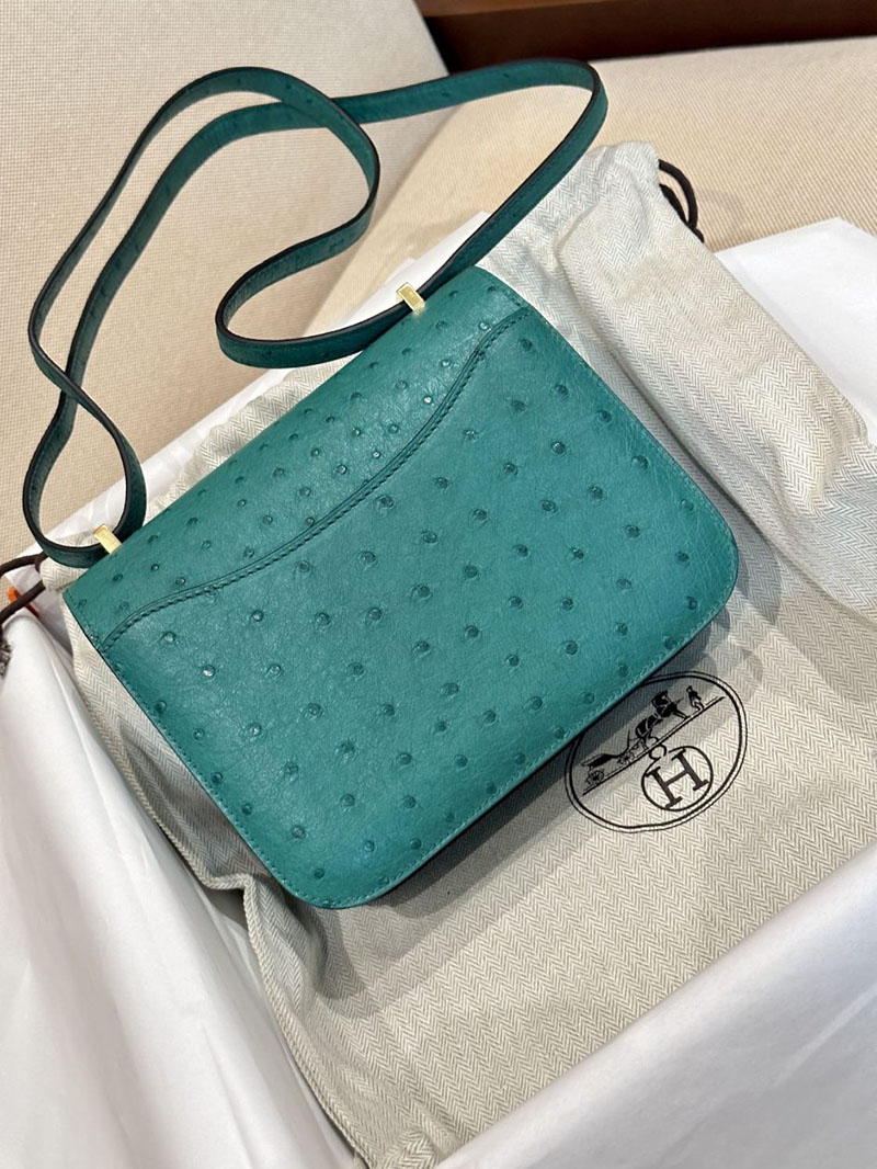 Constance 19CM Ostrich Leather U4 Vert Vertigo Gold hardware