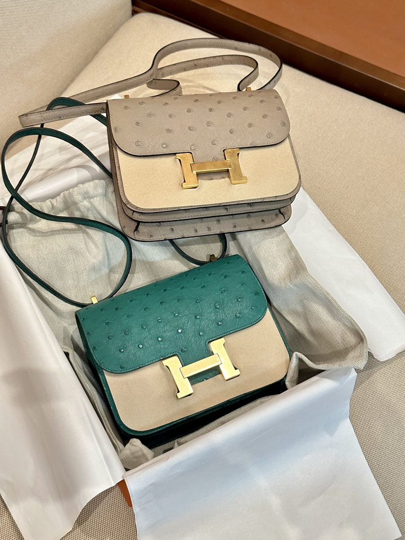 エルメス 2025 値上げ エルメス コンスタンス3 ミニ ヴェールヴェルティゴ オーストリッチ ゴールド金具 2412913