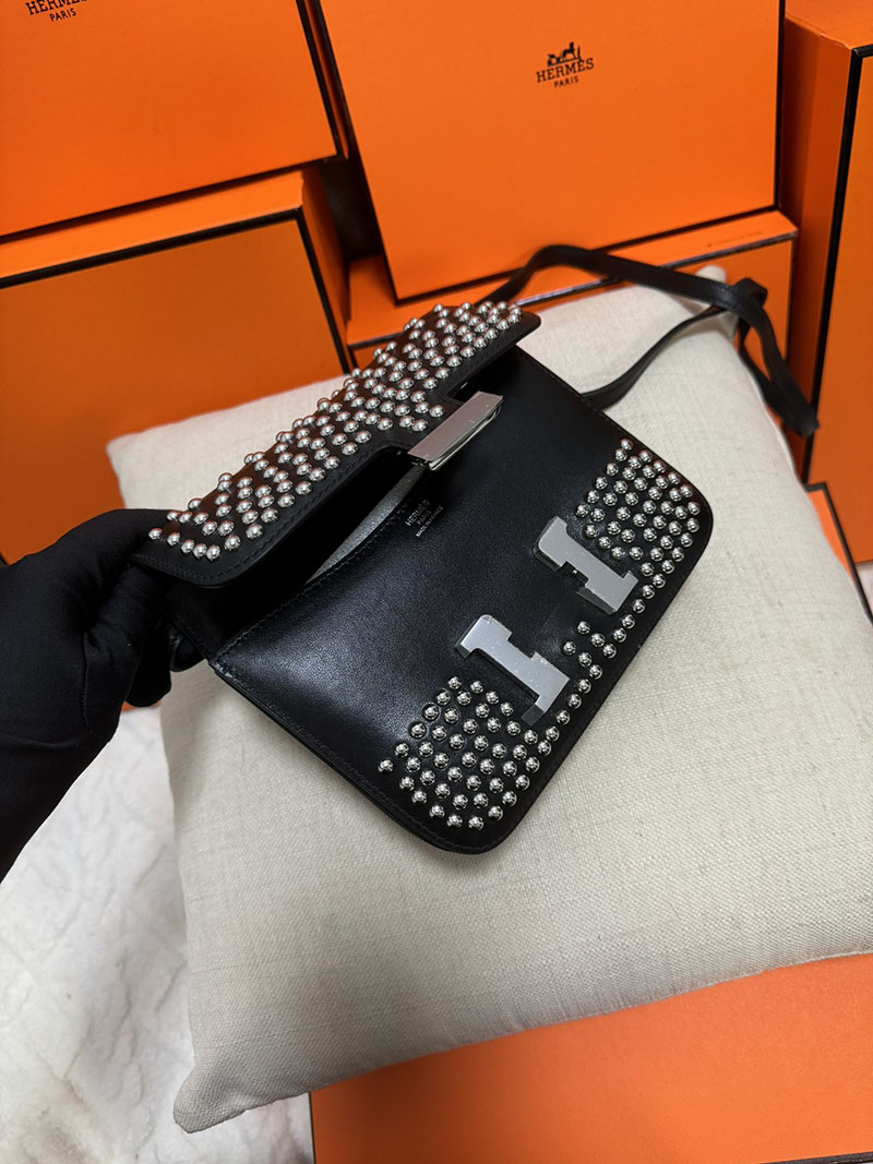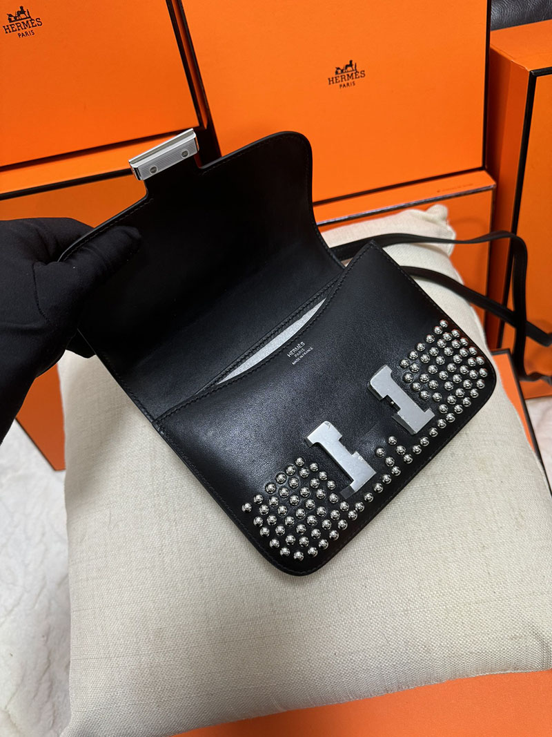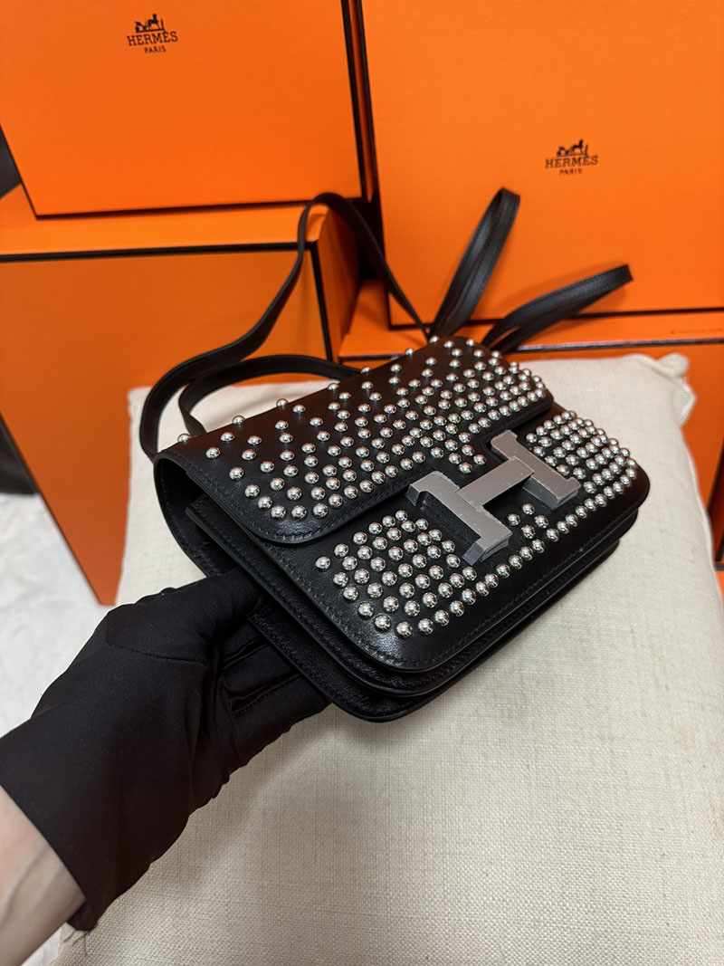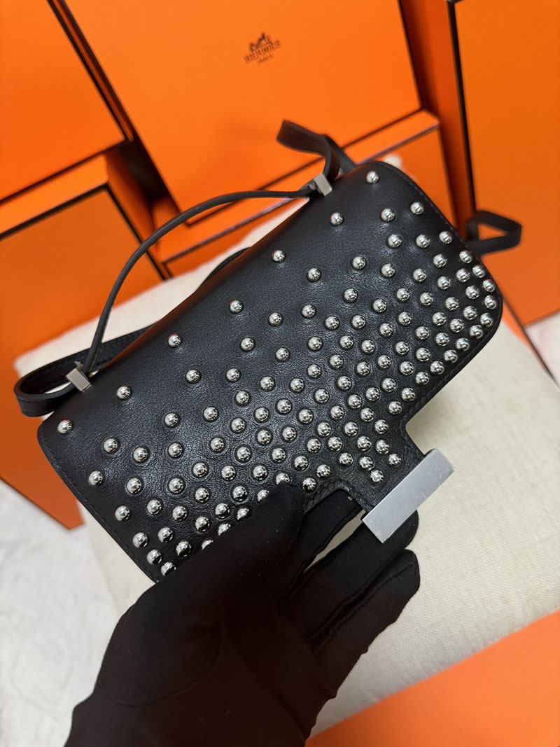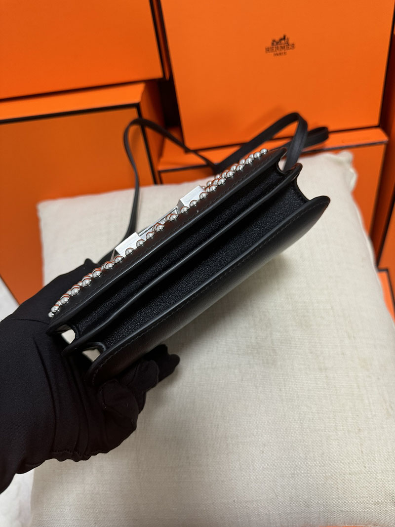 エルメス コンスタンス ミニ ミロワール クルーテ ミラー付き クロ ボックスカーフ シルバー金具 2513441 2025定価 Constance Mini Miroir Cloute