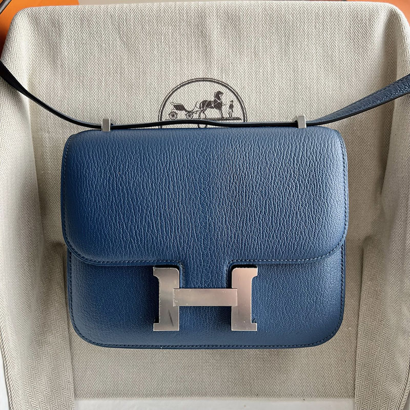 並行輸入品 HERMES コンスタンス3 ミニ ディープブルー シェブルミゾル シルバー金具 2521288 エルメス コンスタンスミニ定価