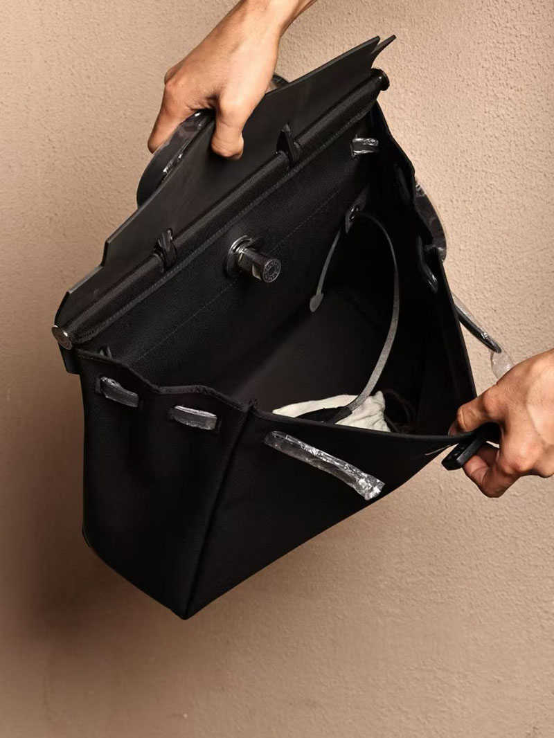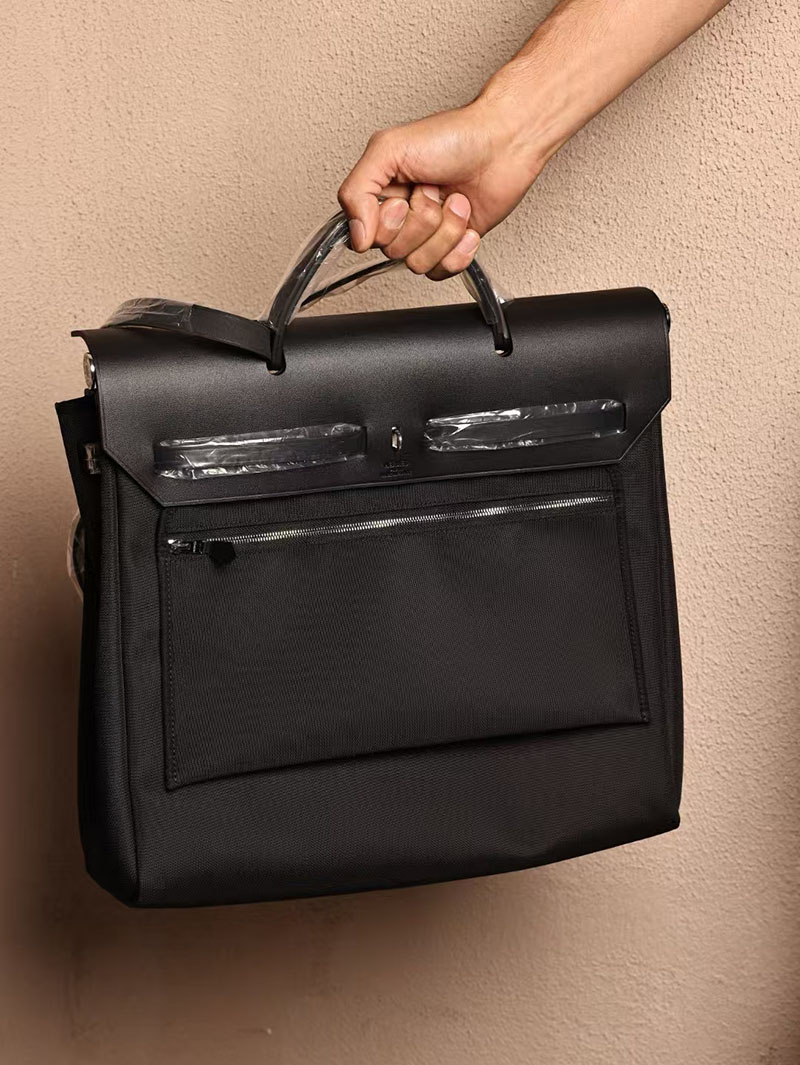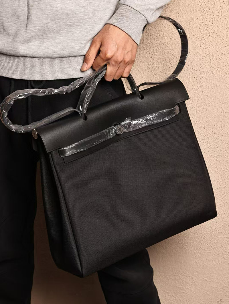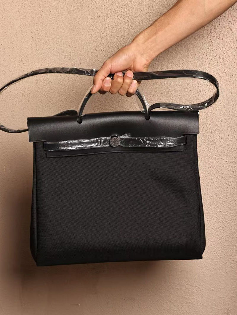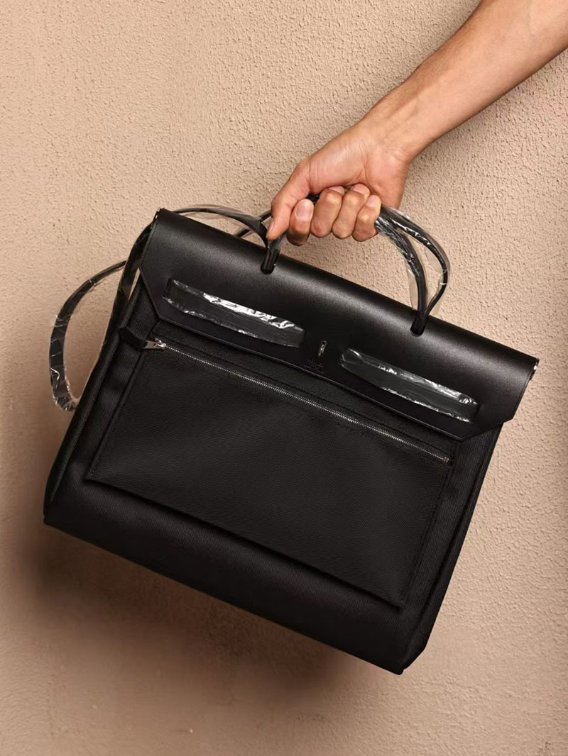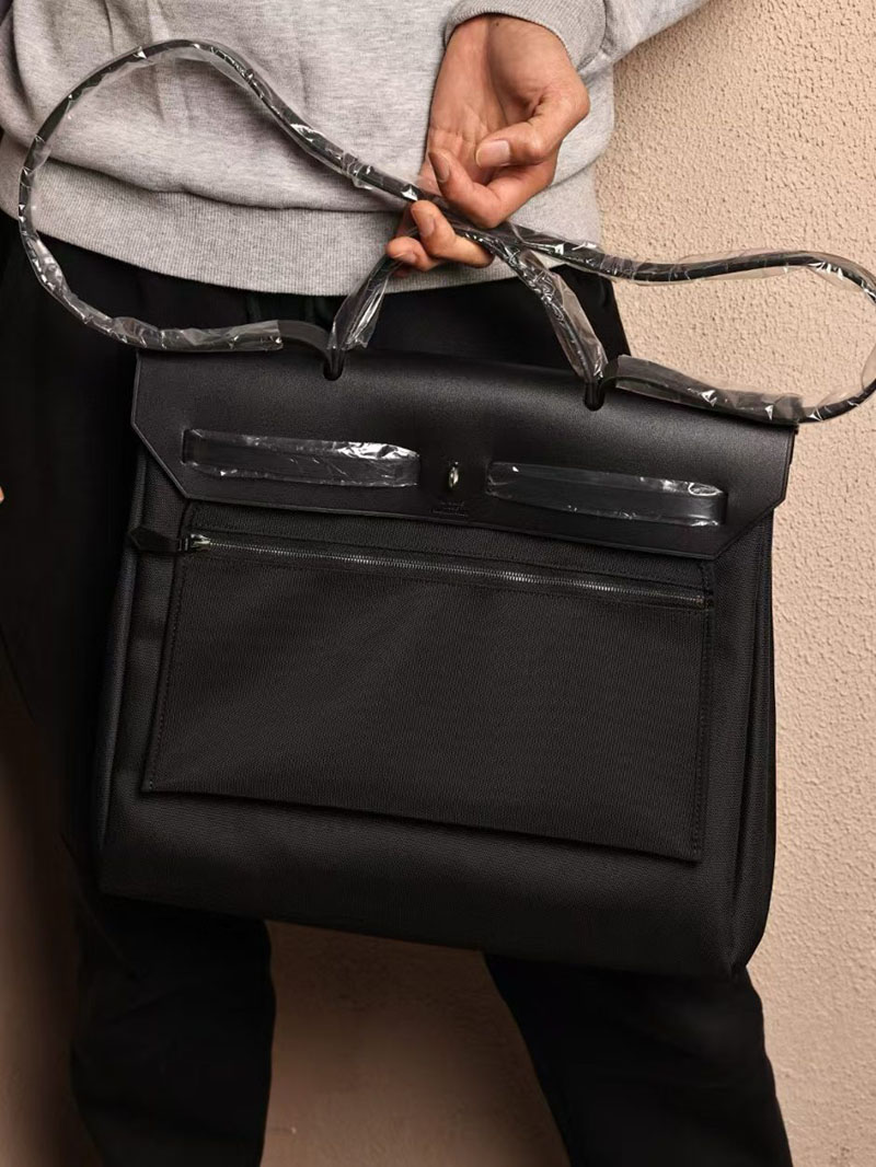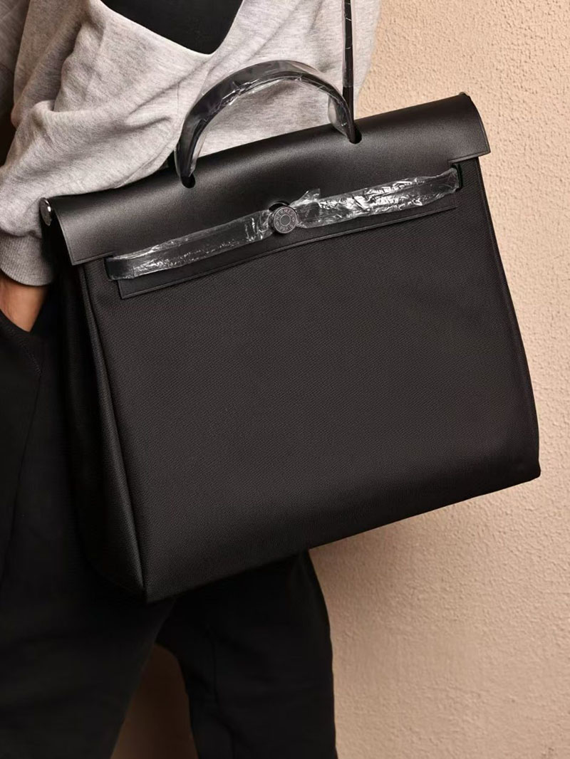 Hermes Men’s Bag Herbag 39CM CK89 Noir Canvas / Calf Leather Silver Hardware
