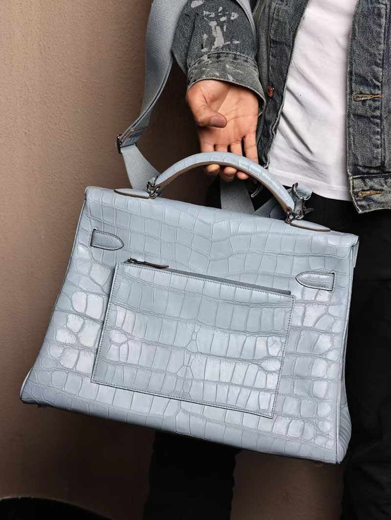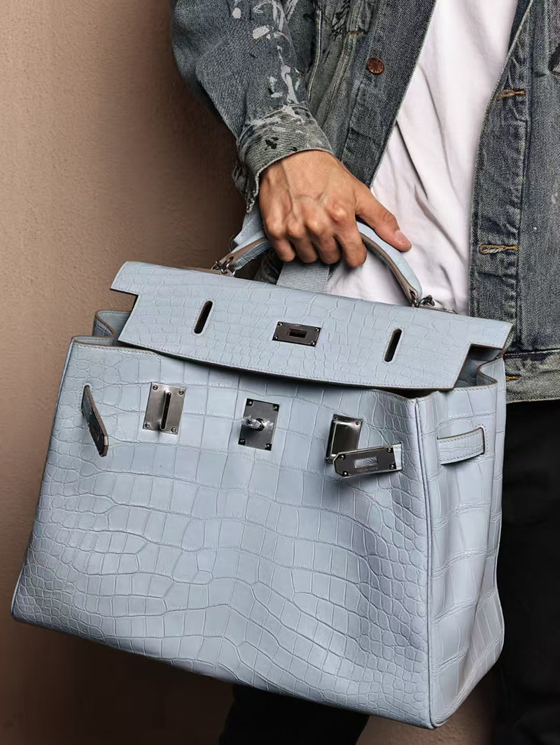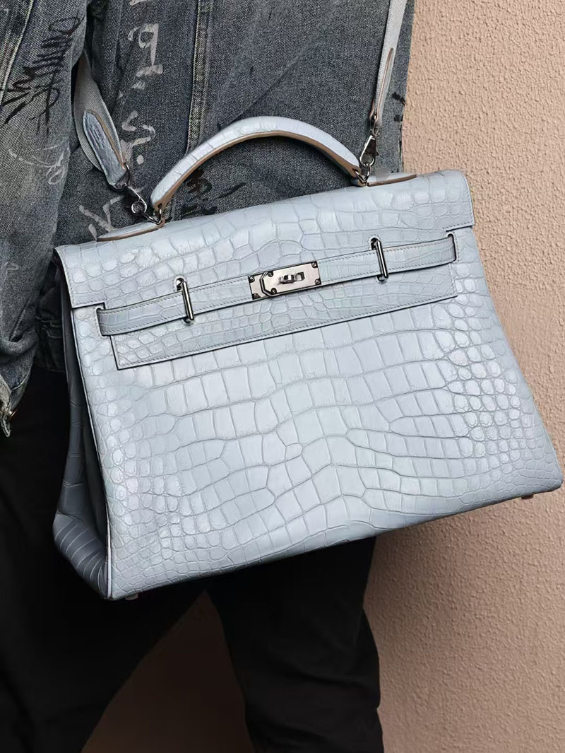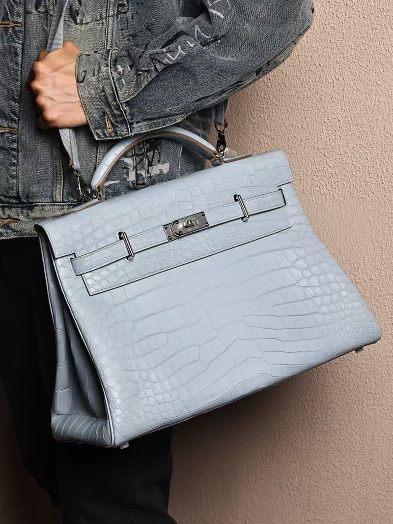エルメス メンズバッグ 新作 HERMES マキシケリー 42cm 内縫い ブルーブリュム クロコダイル ニロティカスマット シルバー金具 2524043